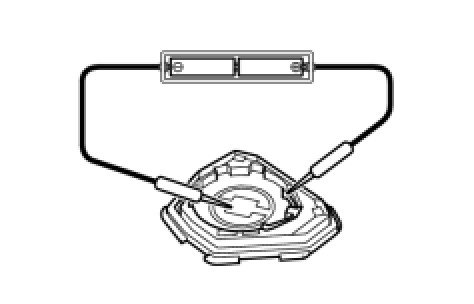 (1) Remove the battery from the electrical key transmitter that does not operate. Attach a lead wire (0.6 mm (0.0236 in.) in diameter or less including wire sheath) with tape or equivalent to the negative terminal Removal.