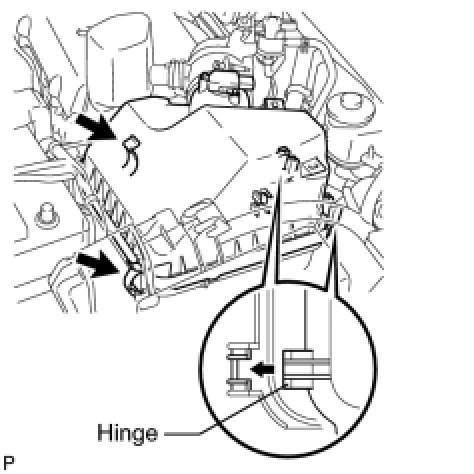 (c) Insert the hinge part of the air cleaner cap into the air cleaner case, then attach the 2 hook clamps.