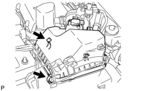 (h) Detach the 2 hook clamps, and then remove the air cleaner cap.