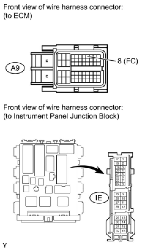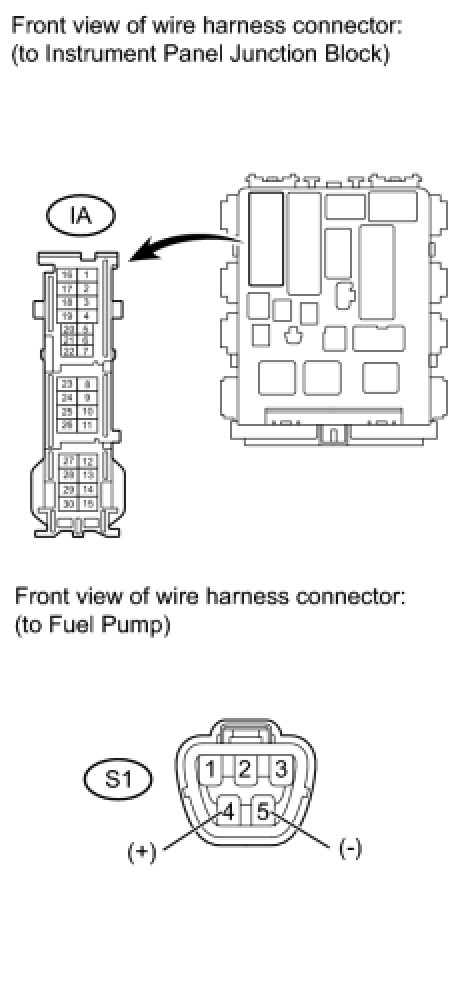 (a) Check the harness and connectors between the instrument panel junction block and fuel pump.