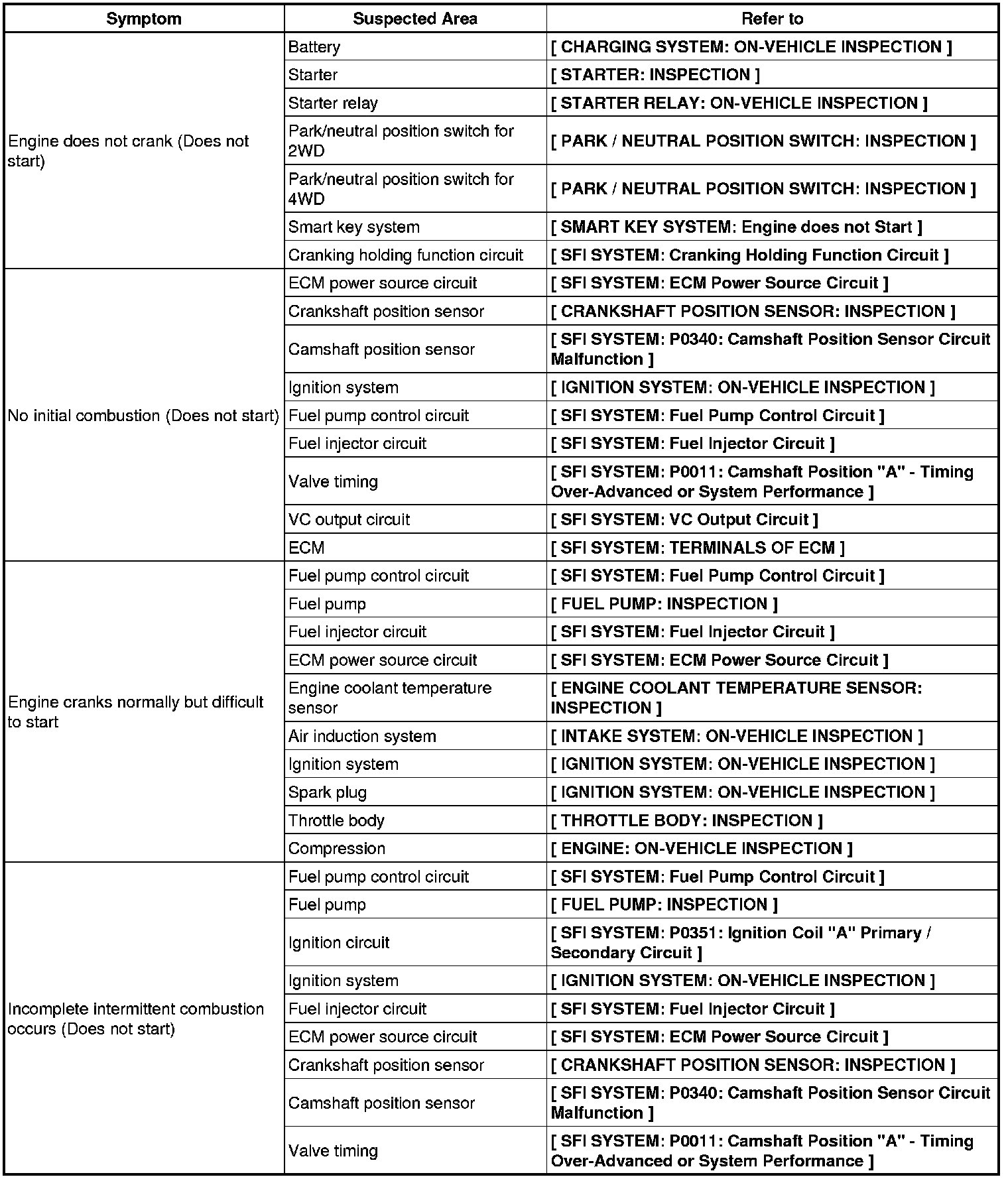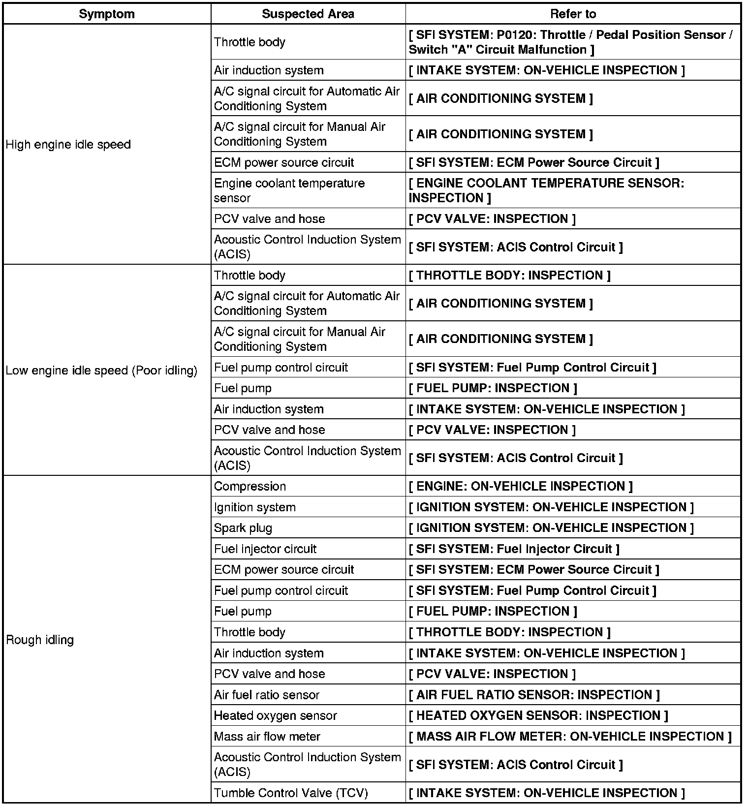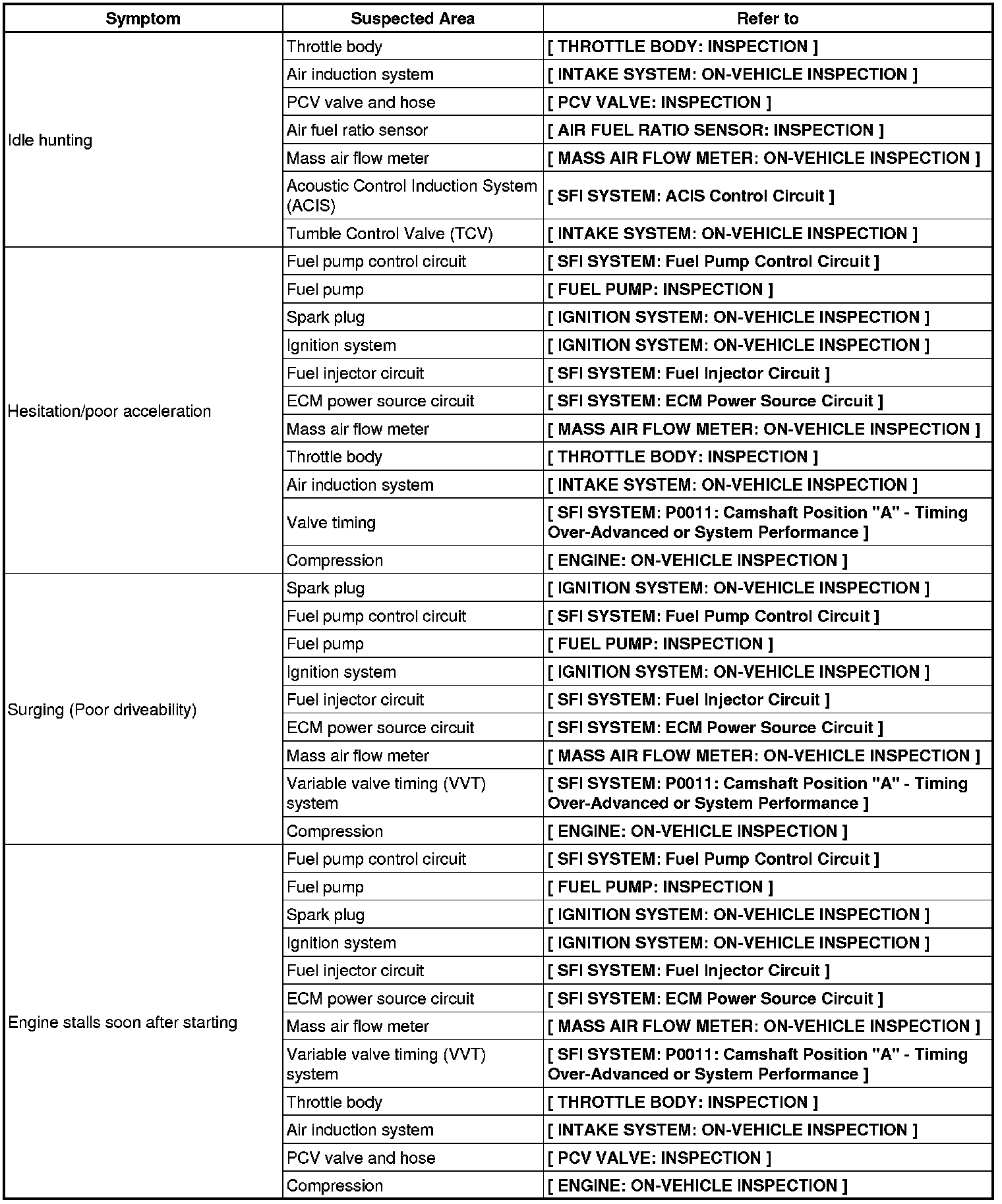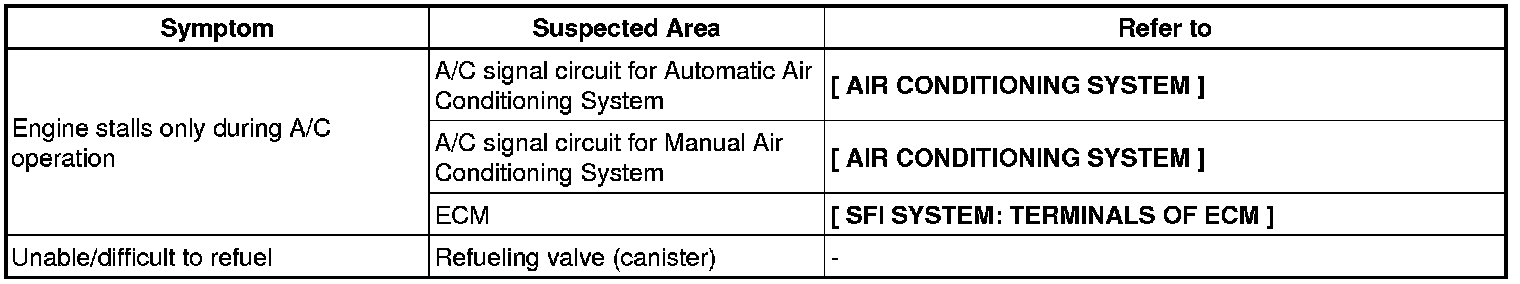 2AR-FE ENGINE CONTROL SYSTEM: SFI SYSTEM: PROBLEM SYMPTOMS TABLE