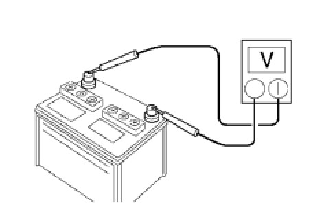 (3) Connect the positive (+) lead of the voltmeter to the positive (+) terminal of the battery.