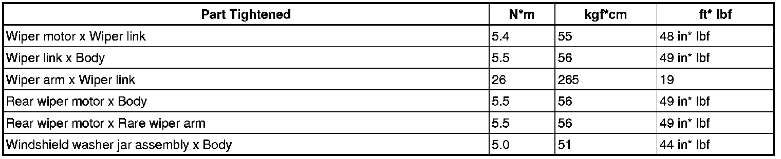 SERVICE SPECIFICATIONS: WIPER AND WASHER: TORQUE SPECIFICATIONS