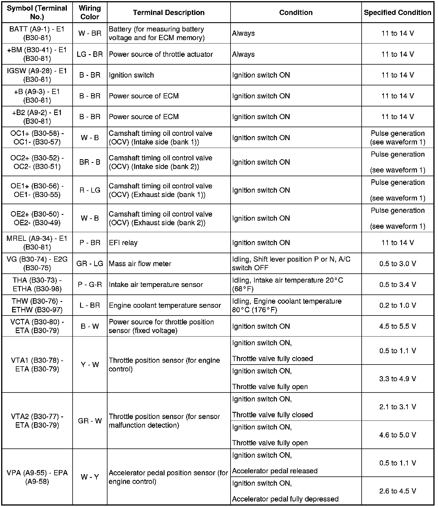 2GR-FE ENGINE CONTROL SYSTEM: SFI SYSTEM: TERMINALS OF ECM