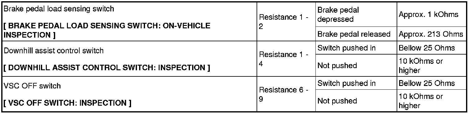 SERVICE SPECIFICATIONS: BRAKE CONTROL: SERVICE DATA