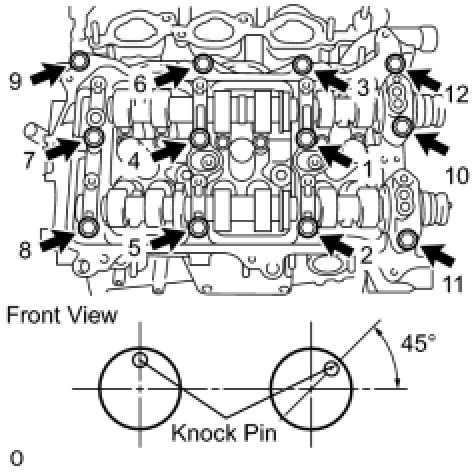Install the camshaft housing, and install the 12 bolts in the order shown in the illustration.