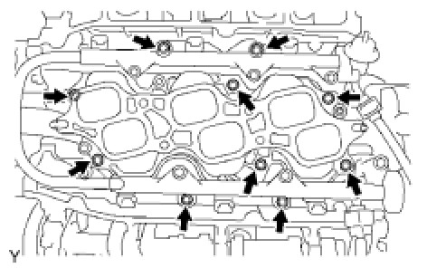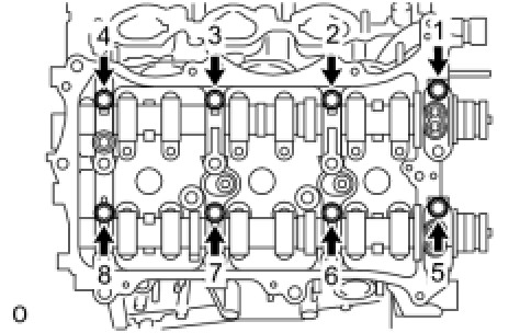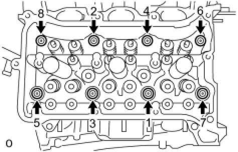 Temporarily install the 8 bolts in the order shown in the illustration.