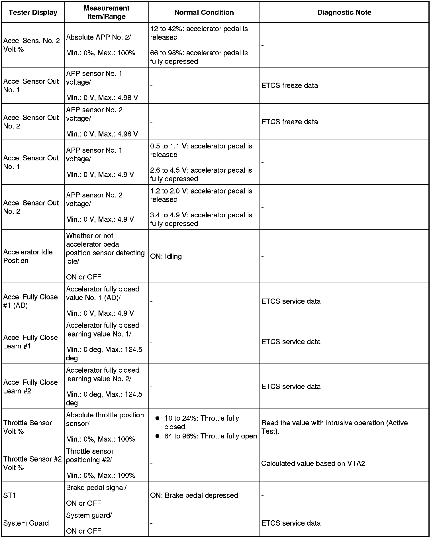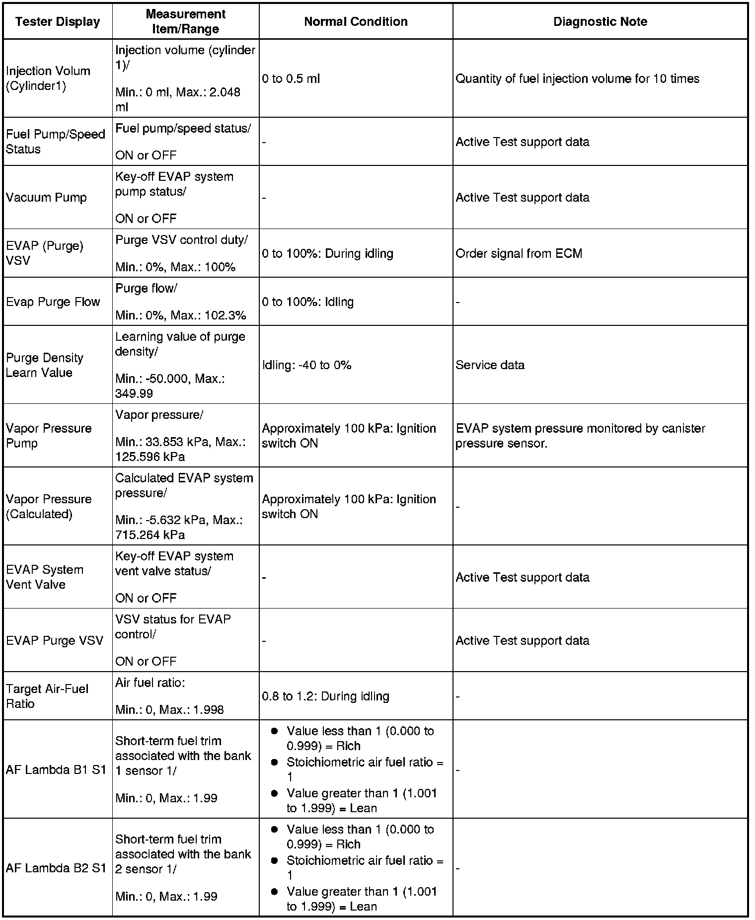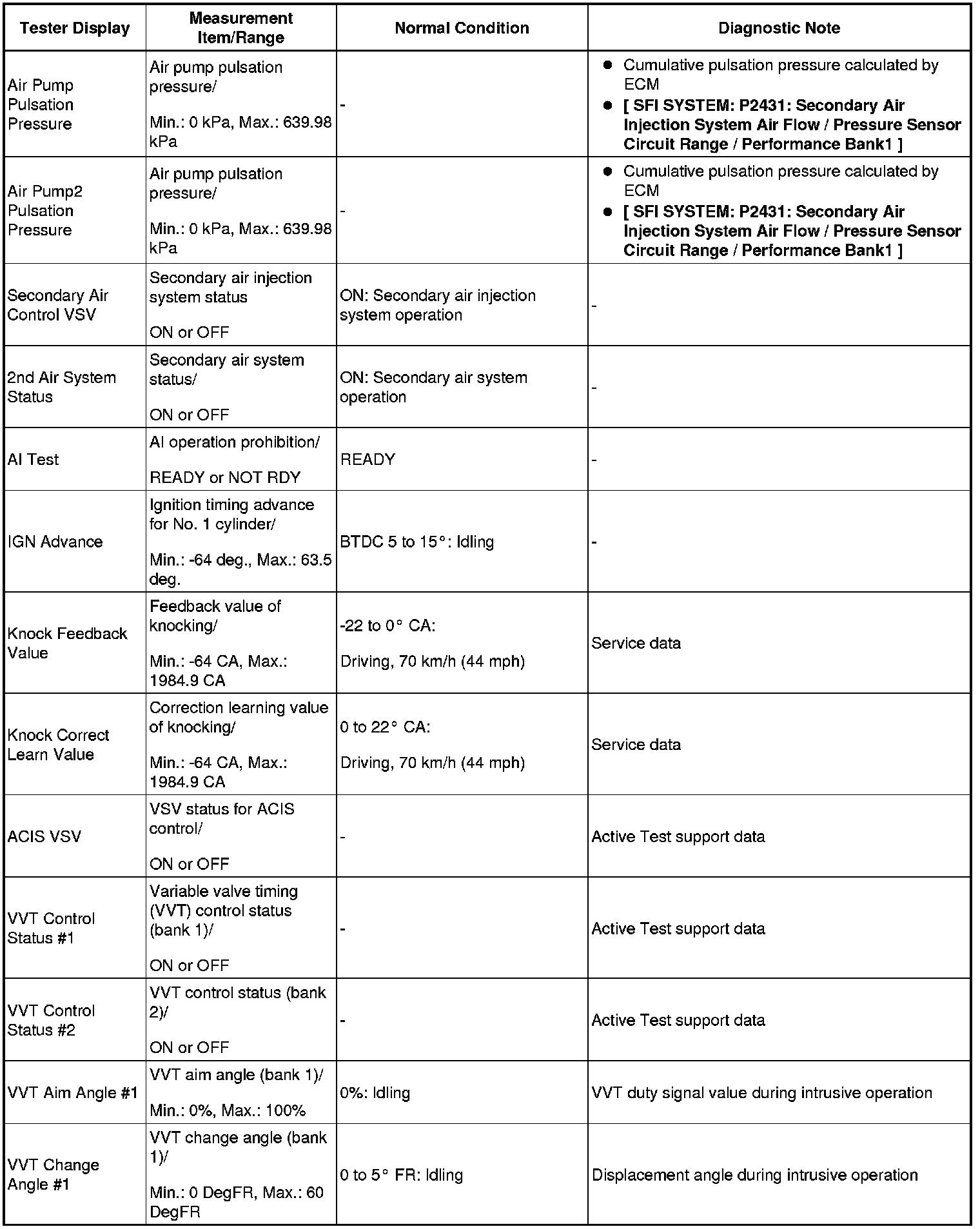 HINT: Using the Techstream to read the Data List allows the values or states of switches, sensors, actuators and other items to be read without removing any parts. This non-intrusive inspection can be very useful because intermittent conditions or signals may be discovered before parts or wiring is disturbed. Reading the Data List information early in troubleshooting is one way to save diagnostic time.
