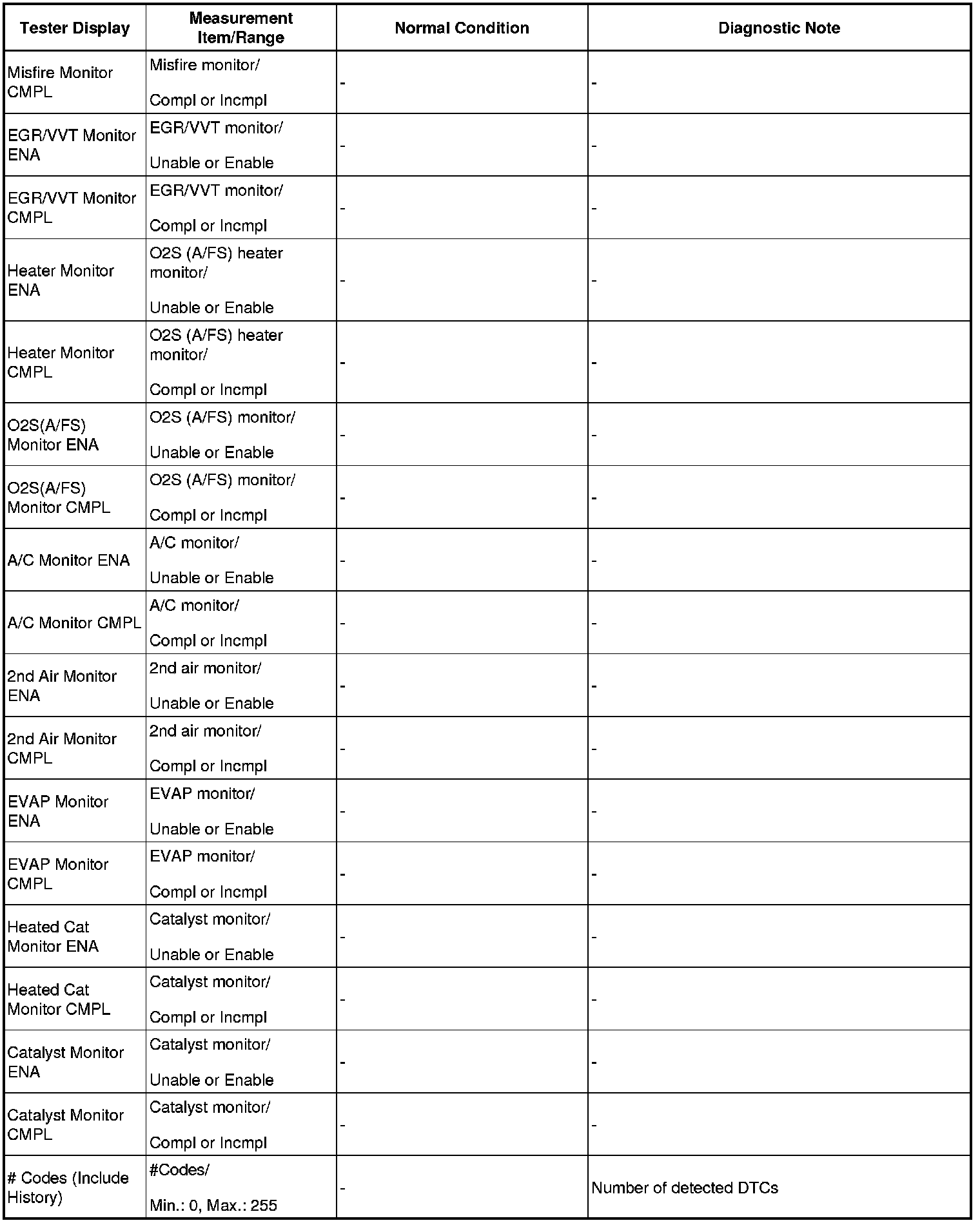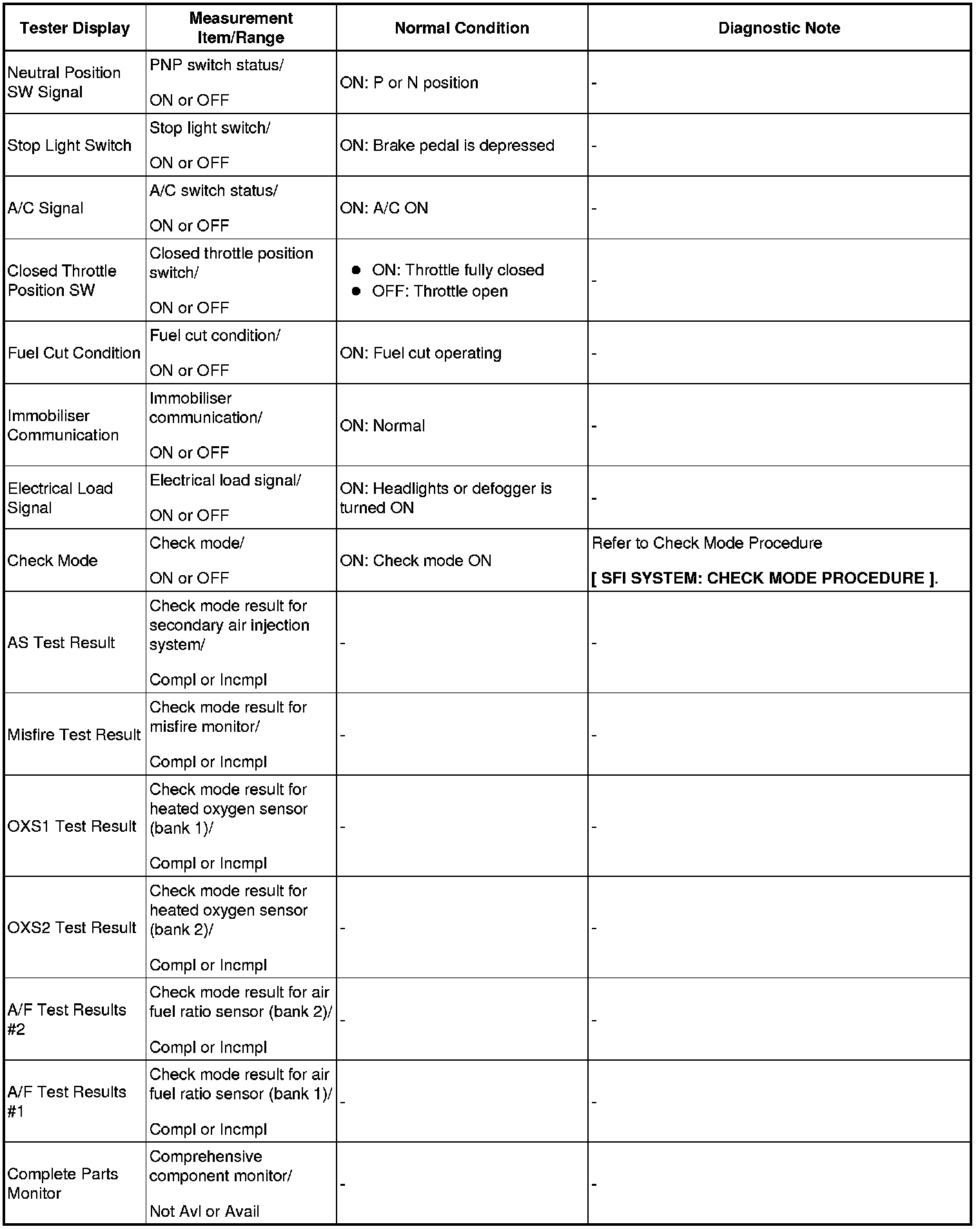 (e) Perform the System Check by referring to the table below.