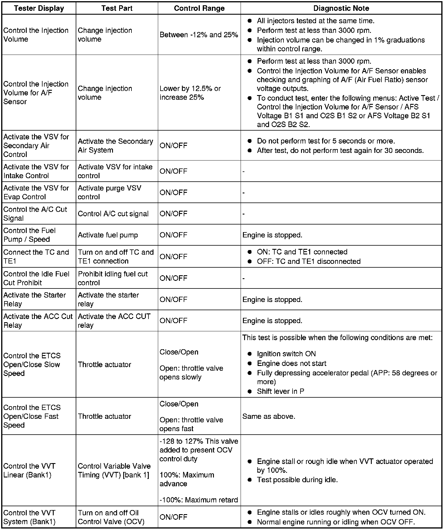 HINT: Using the Techstream to perform Active Tests allows relays, VSVs, actuators and other items to be operated without removing any parts. This non-intrusive functional inspection can be very useful because intermittent operation may be discovered before parts or wiring is disturbed. Performing Active Tests early in troubleshooting is one way to save diagnostic time. Data List information can be displayed while performing Active Tests.