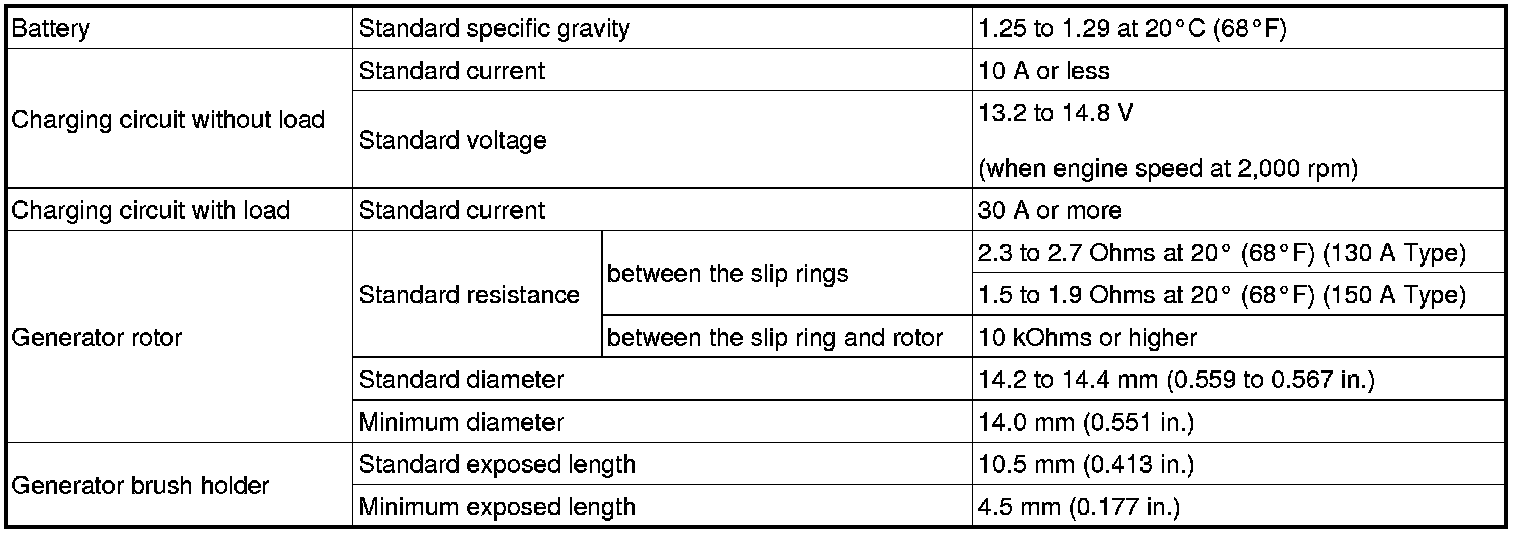 SPECIFICATIONS: 2UZ-FE BATTERY / CHARGING: SERVICE DATA