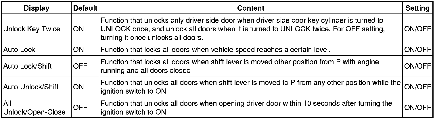 DOOR LOCK: POWER DOOR LOCK CONTROL SYSTEM: CUSTOMIZE PARAMETERS