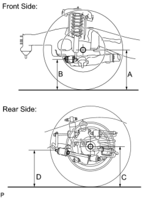 (a) Press down on the vehicle several times to stabilize the suspension, and then measure the vehicle height.