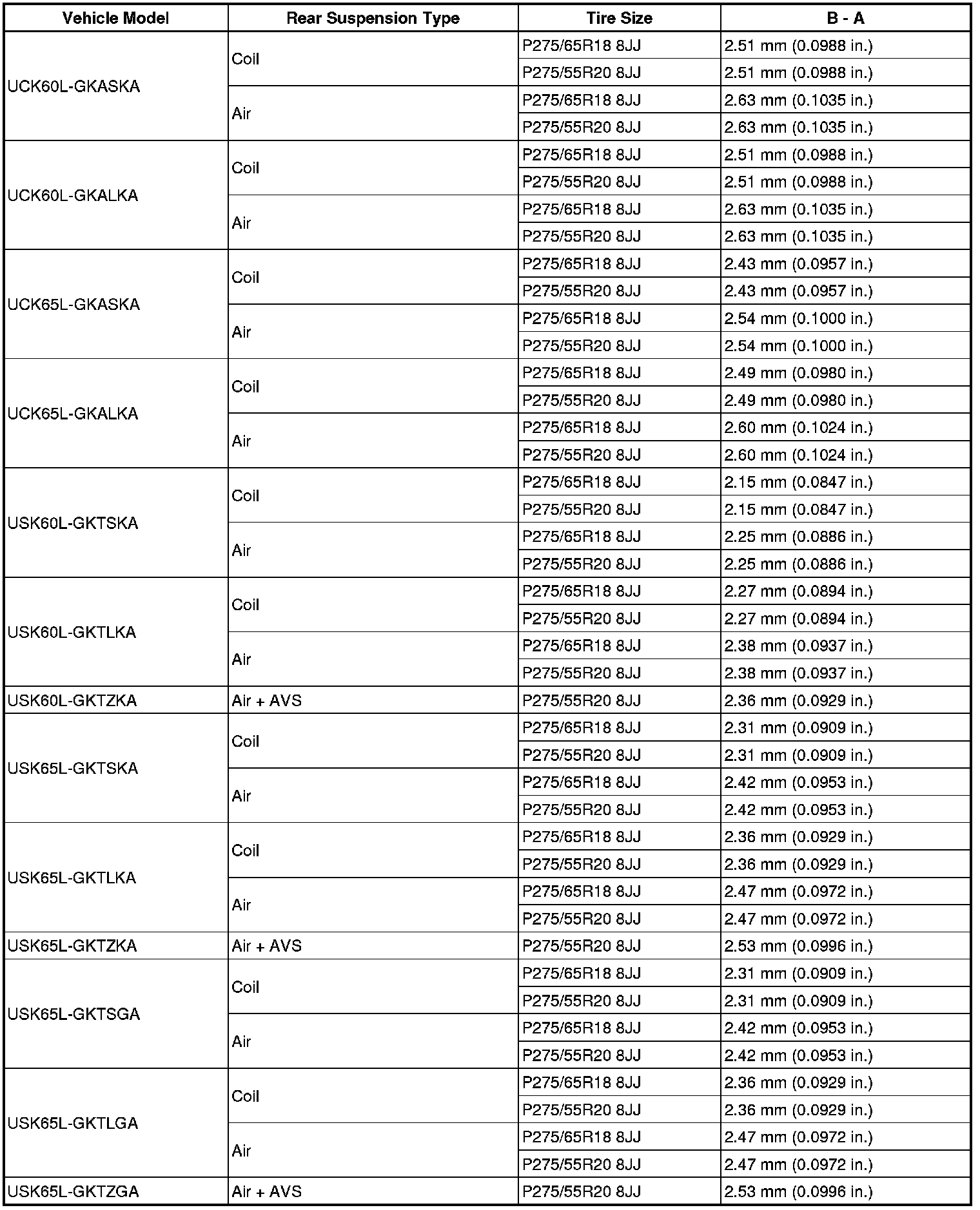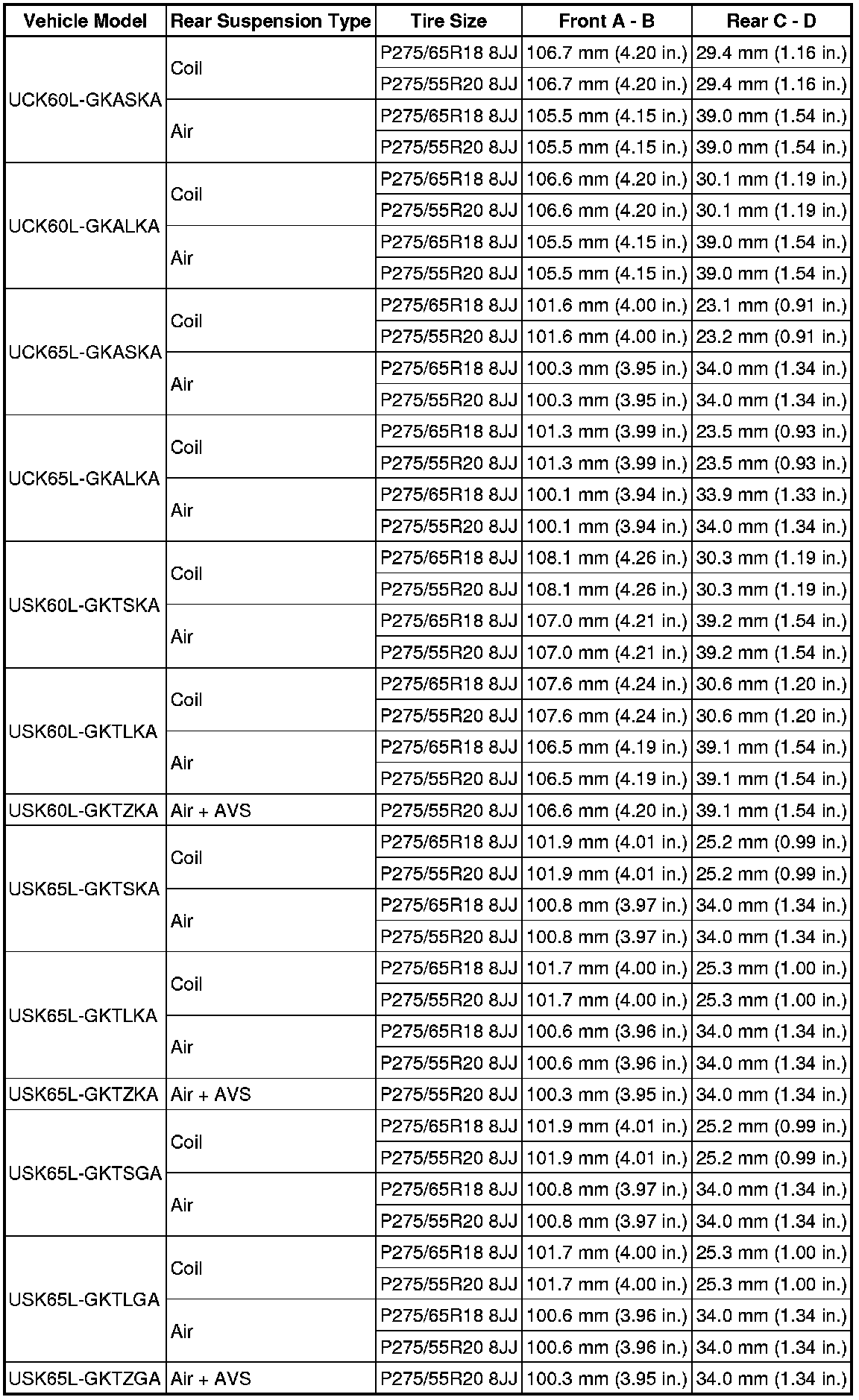 Standard Vehicle Height (Unloaded Vehicle):