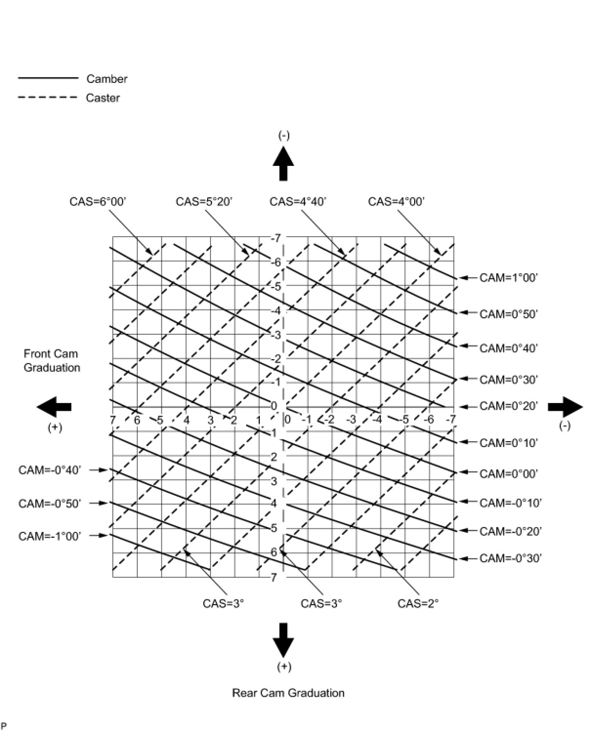 (4) As shown in the chart, read the distance from the marked point to 0, and adjust the front and/ or rear adjusting cams accordingly.