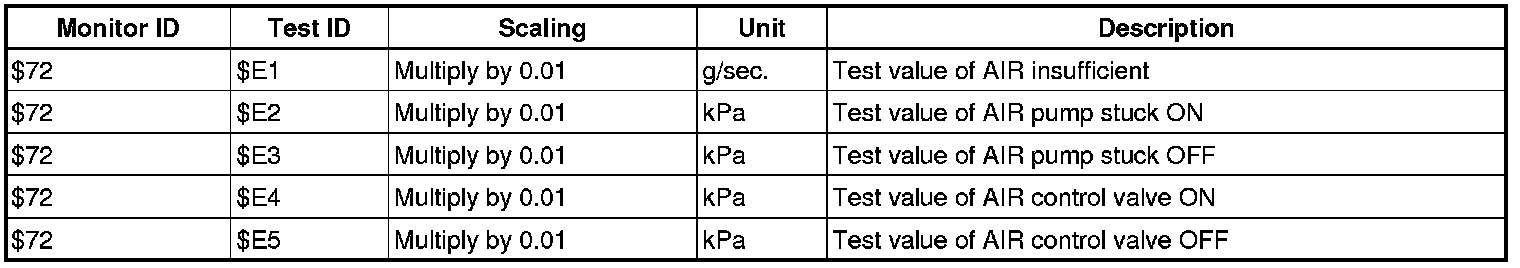 If you use a generic scan tool, multiply the test value by the scaling value listed below.