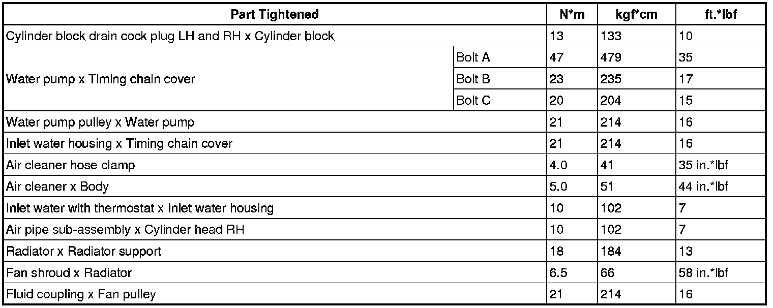 SPECIFICATIONS: 3UR-FE COOLING: TORQUE SPECIFICATIONS