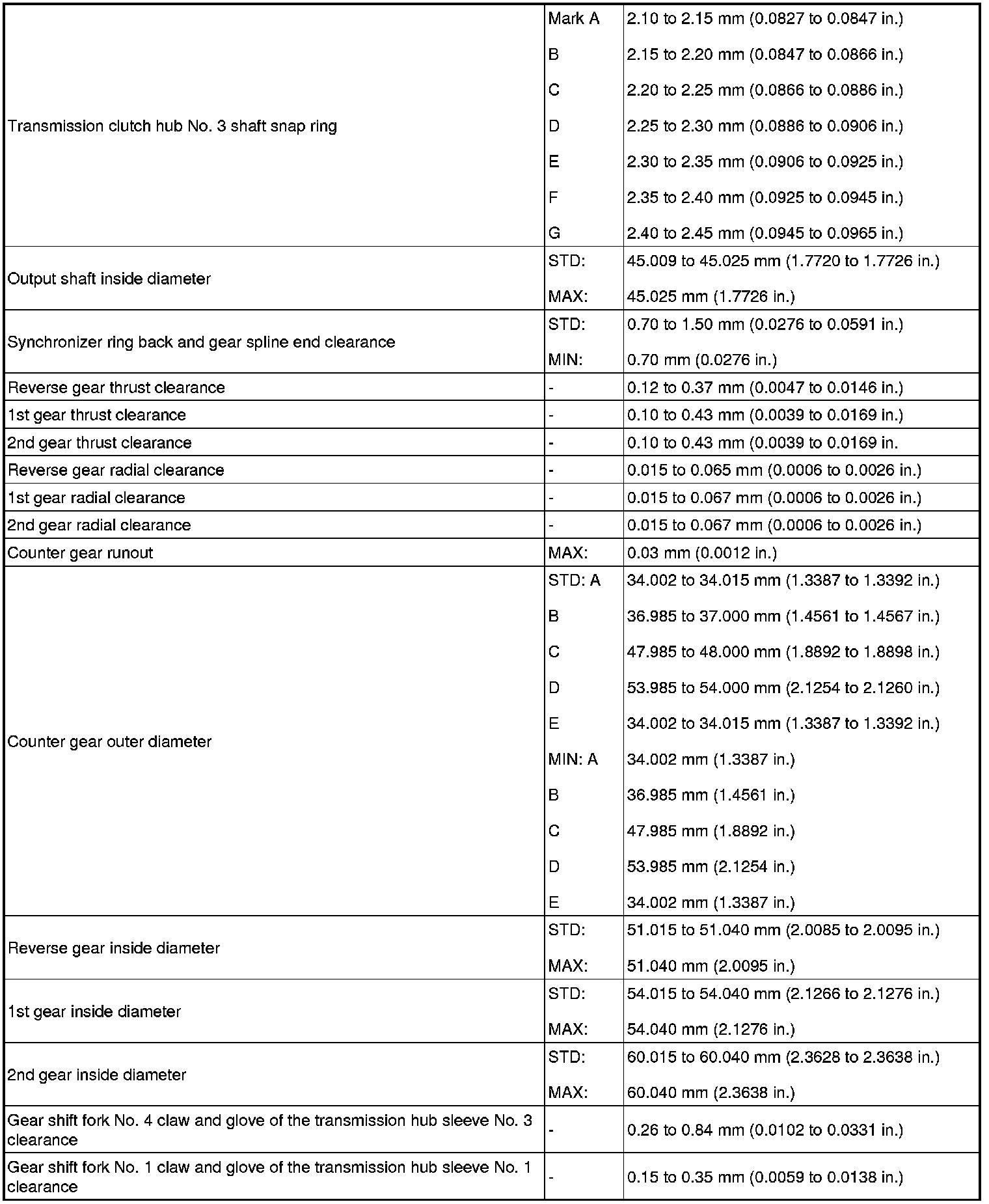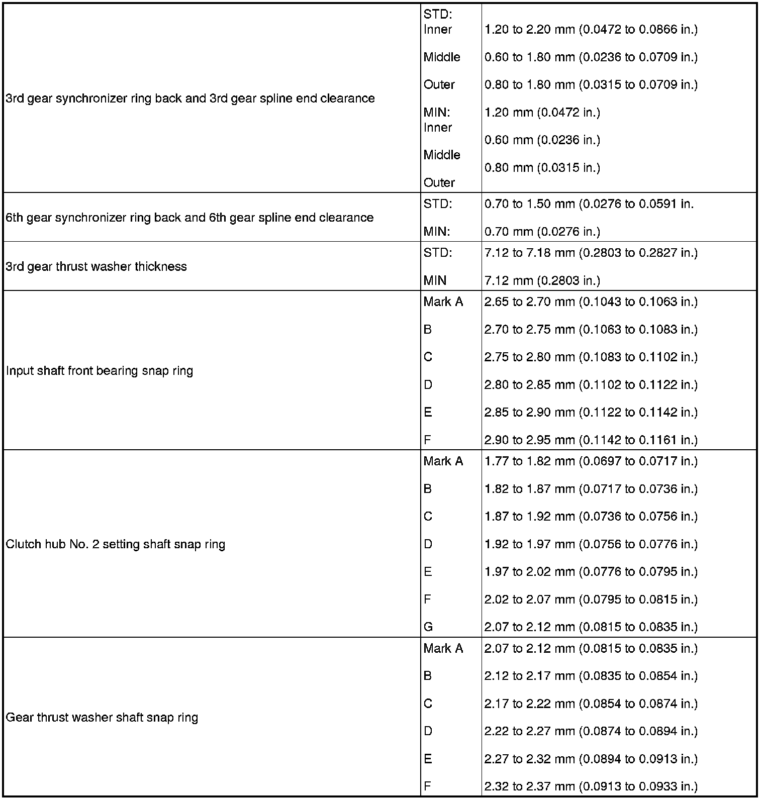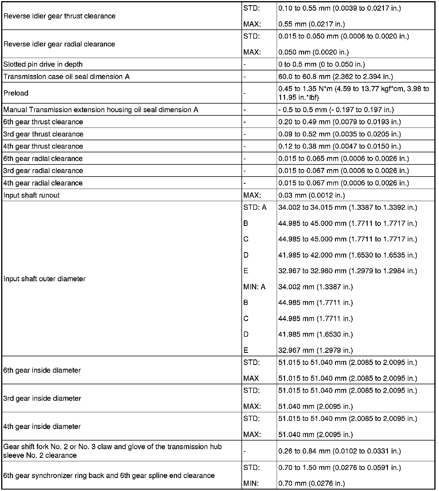 SERVICE SPECIFICATIONS: RA60 MANUAL TRANSMISSION: SERVICE DATA