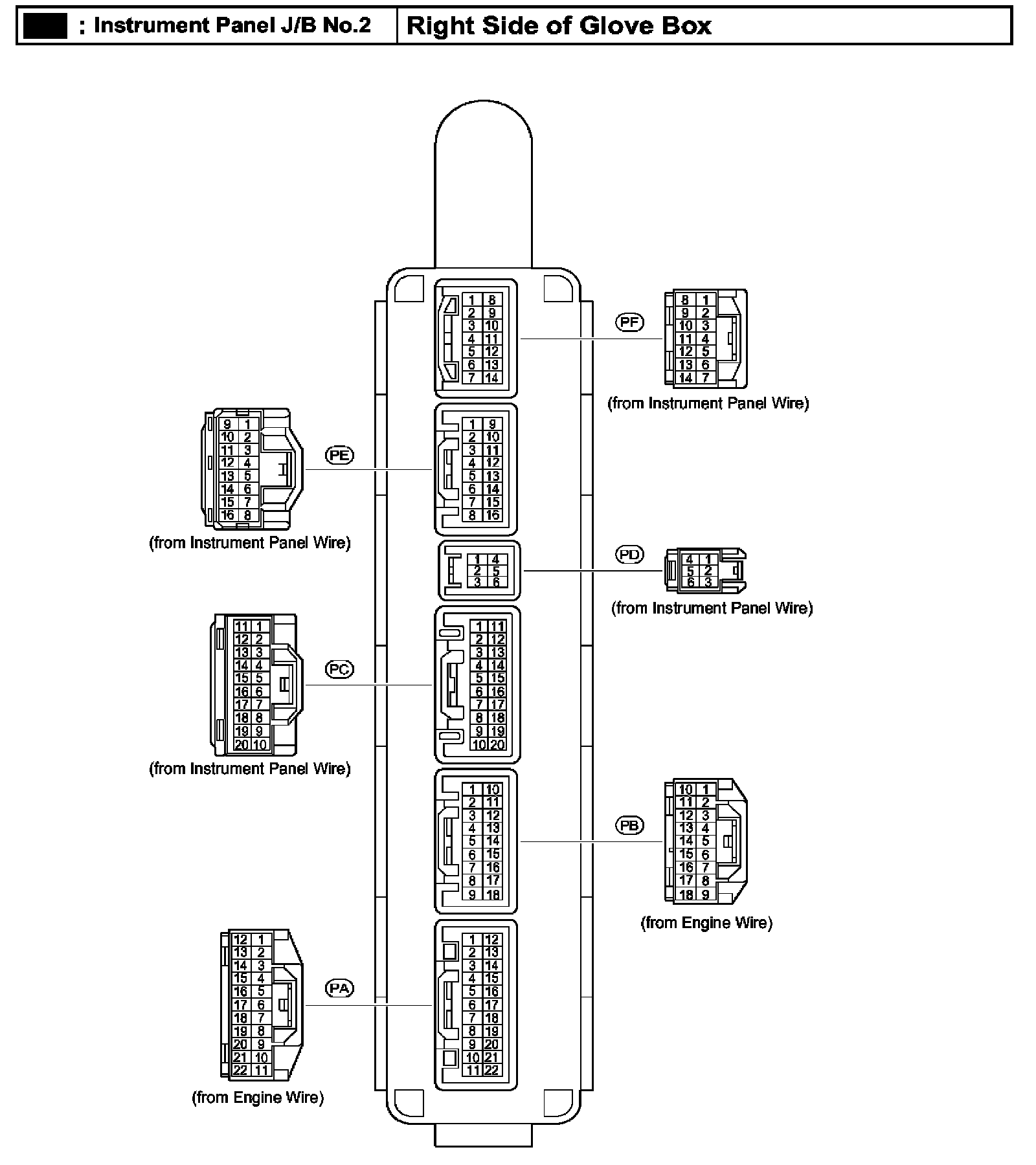 Instrument Panel J/B No.2 - Right Side of Glove Box: