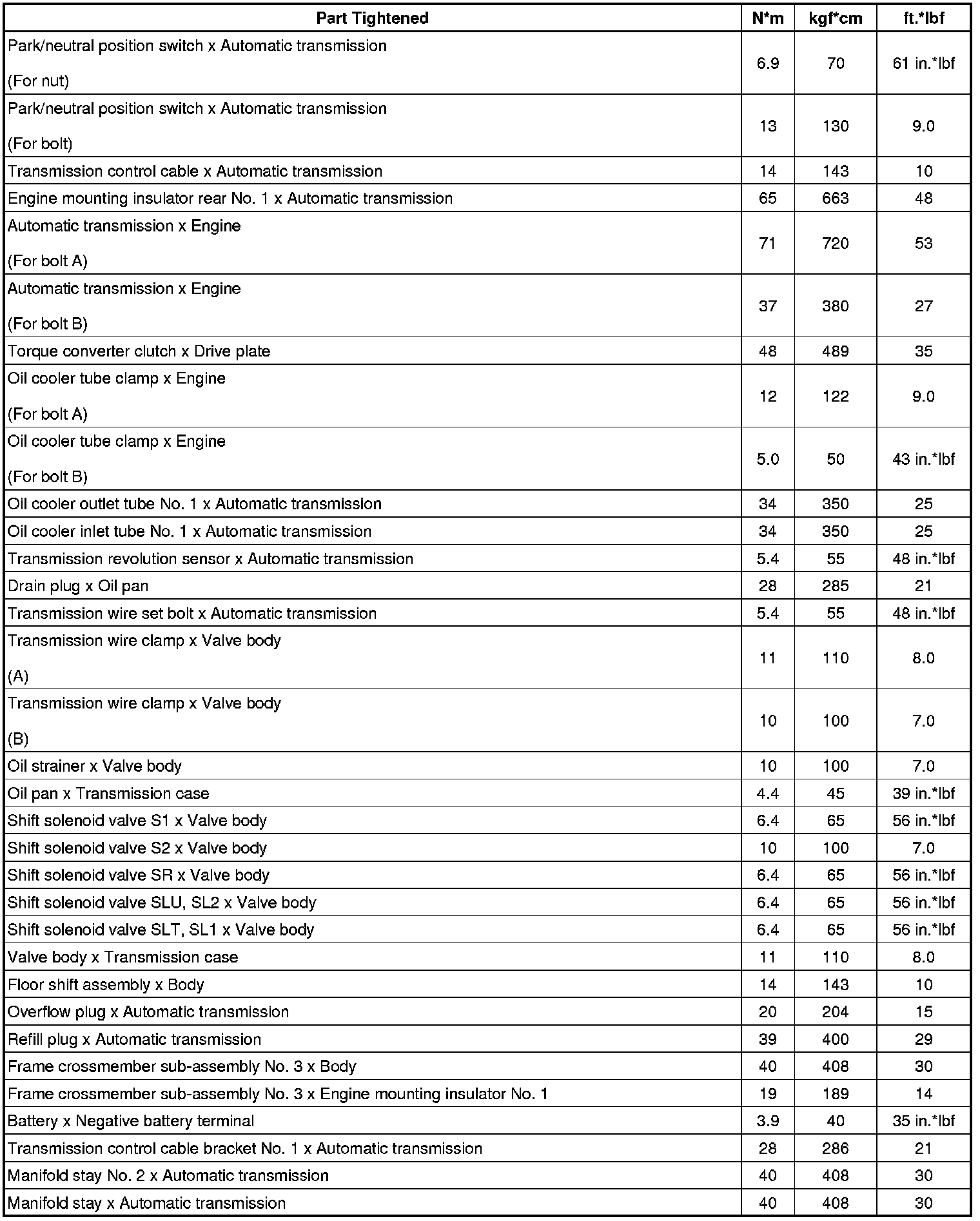 SERVICE SPECIFICATIONS: A750F AUTOMATIC TRANSMISSION: TORQUE SPECIFICATIONS