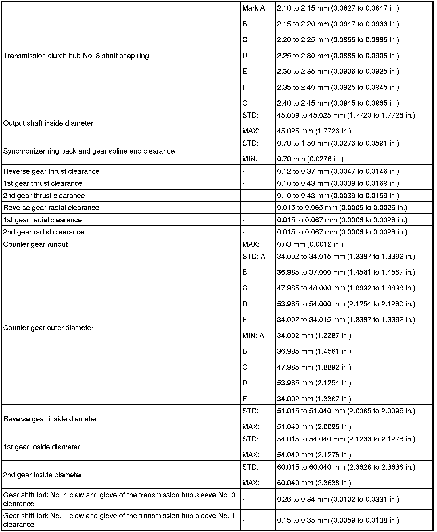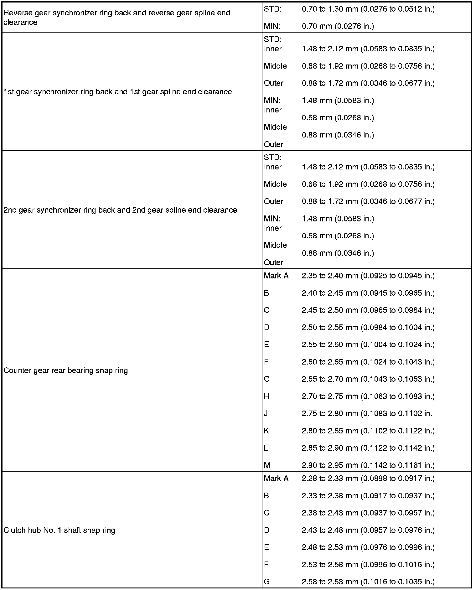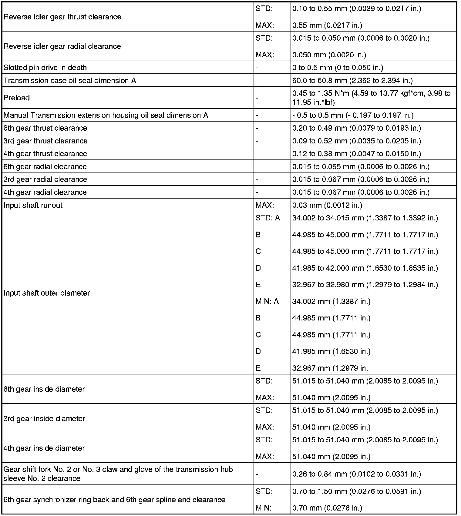 SERVICE SPECIFICATIONS: RA60F MANUAL TRANSMISSION: SERVICE DATA