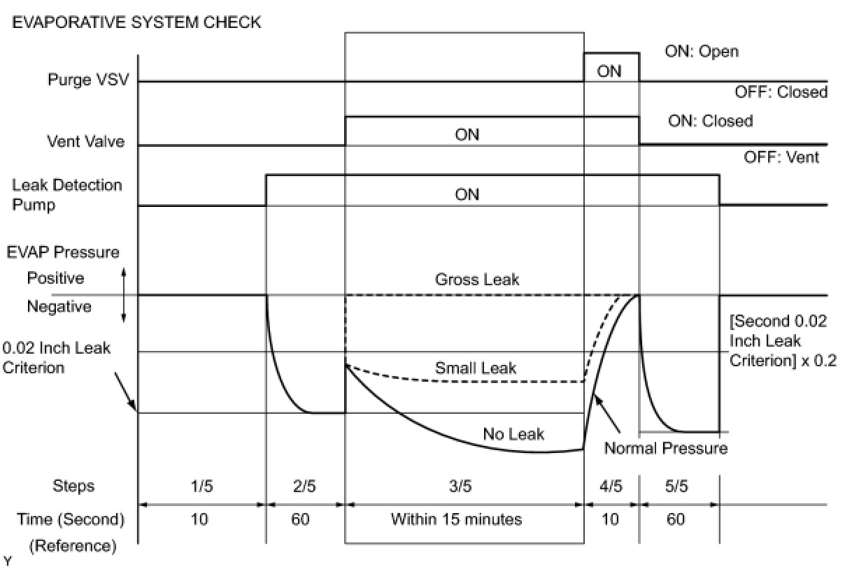 (b) Compare the EVAP pressure in step 3/5 and the second 0.02 inch leak criterion (step 5/5).