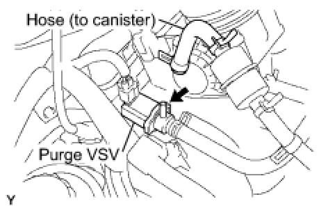 (b) Disconnect the hose (connected to the canister) from the purge VSV.
