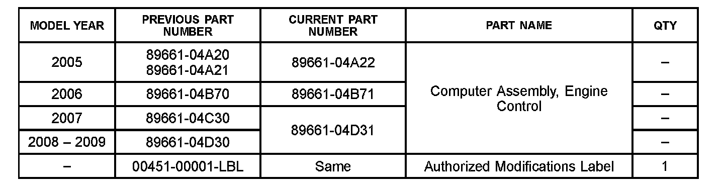 ^ Authorized Modification Labels may be ordered in packages of 25 from the Materials Distribution Center (MDC) through Dealer Daily - Dealer Support Materials Orders.