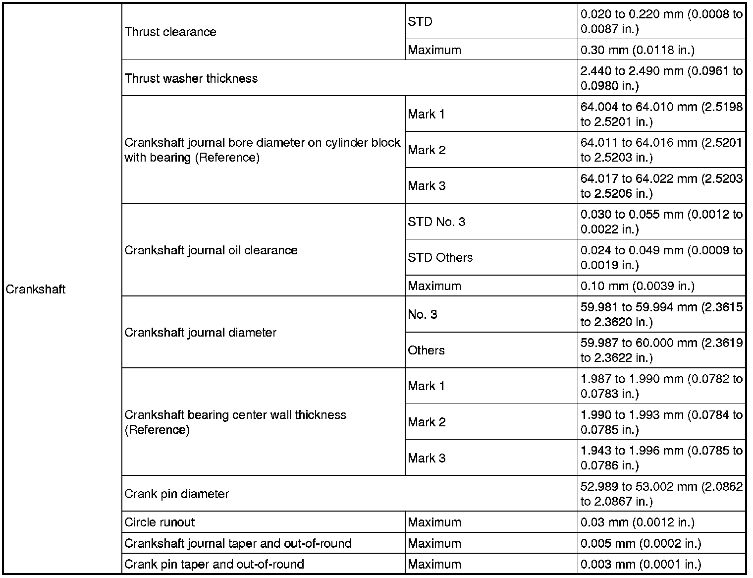 Each bearing's standard thickness is indicated by a 1, 2 or 3 mark on its