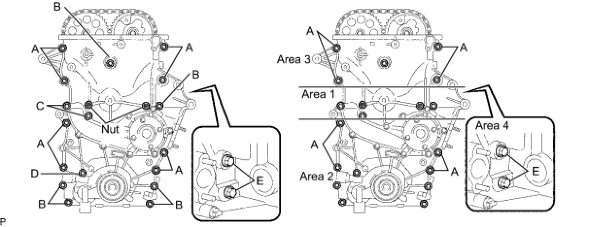 (i) Fully tighten the bolts A in the following order: Area 2 and then Area 3.