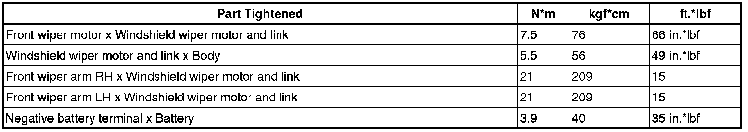SERVICE SPECIFICATIONS: WIPER AND WASHER: TORQUE SPECIFICATIONS