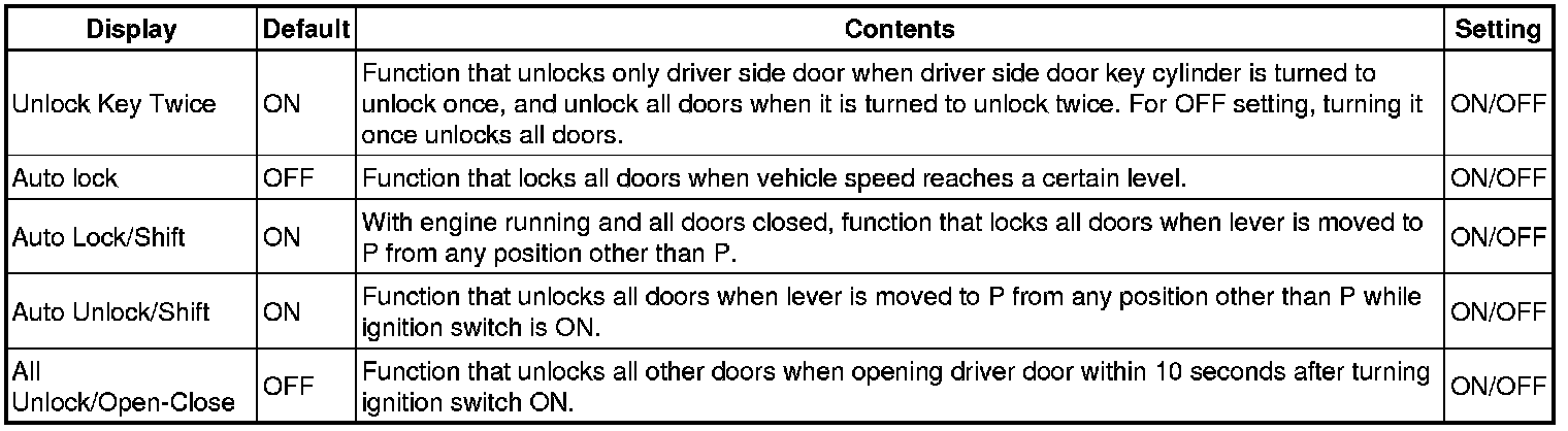 DOOR LOCK: POWER DOOR LOCK CONTROL SYSTEM: CUSTOMIZE PARAMETERS
