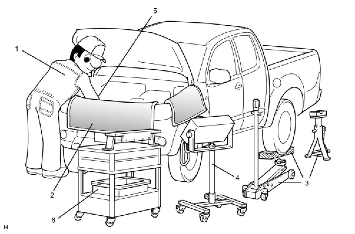 (b) JACKING UP AND SUPPORTING VEHICLE