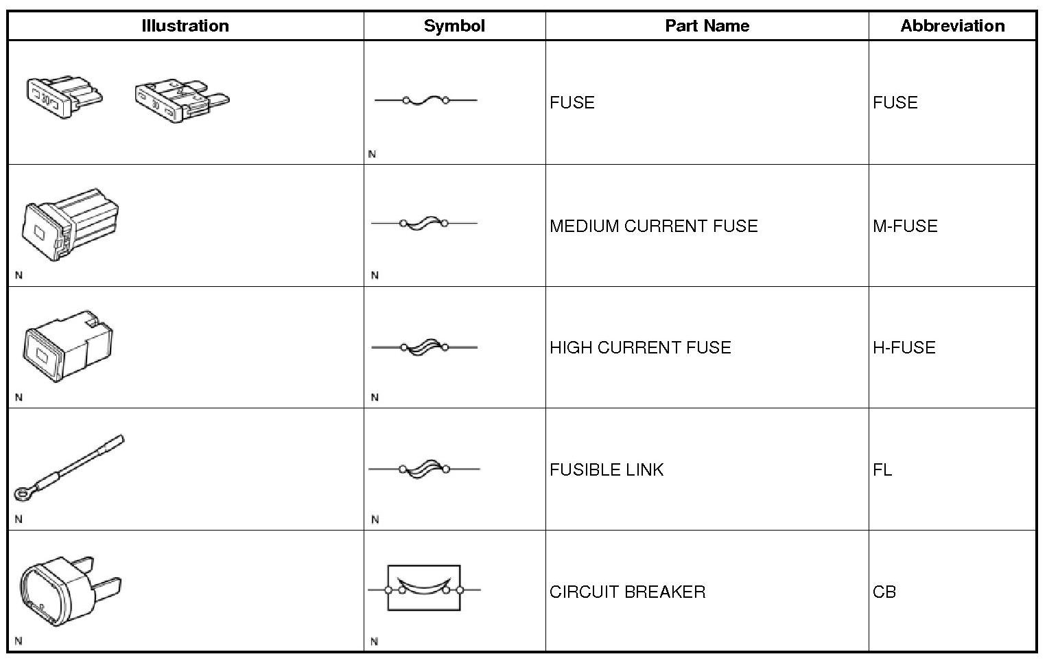 (2) If the wire of a fuse is broken, confirm that there are no shorts in its circuit.