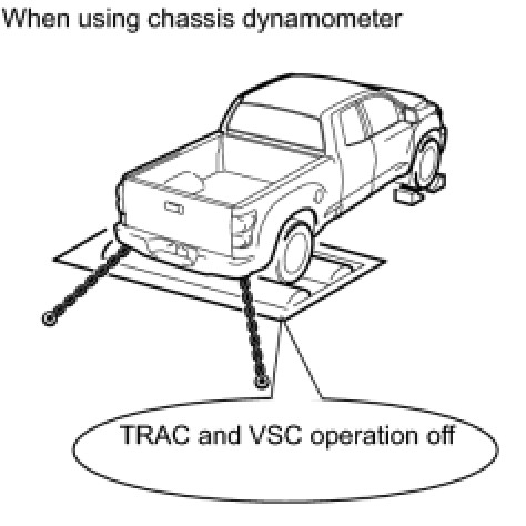 - If the vehicle is tested in normal mode on the drum tester, TRAC and VSC operation may cause the vehicle to jump out from the drum tester.
