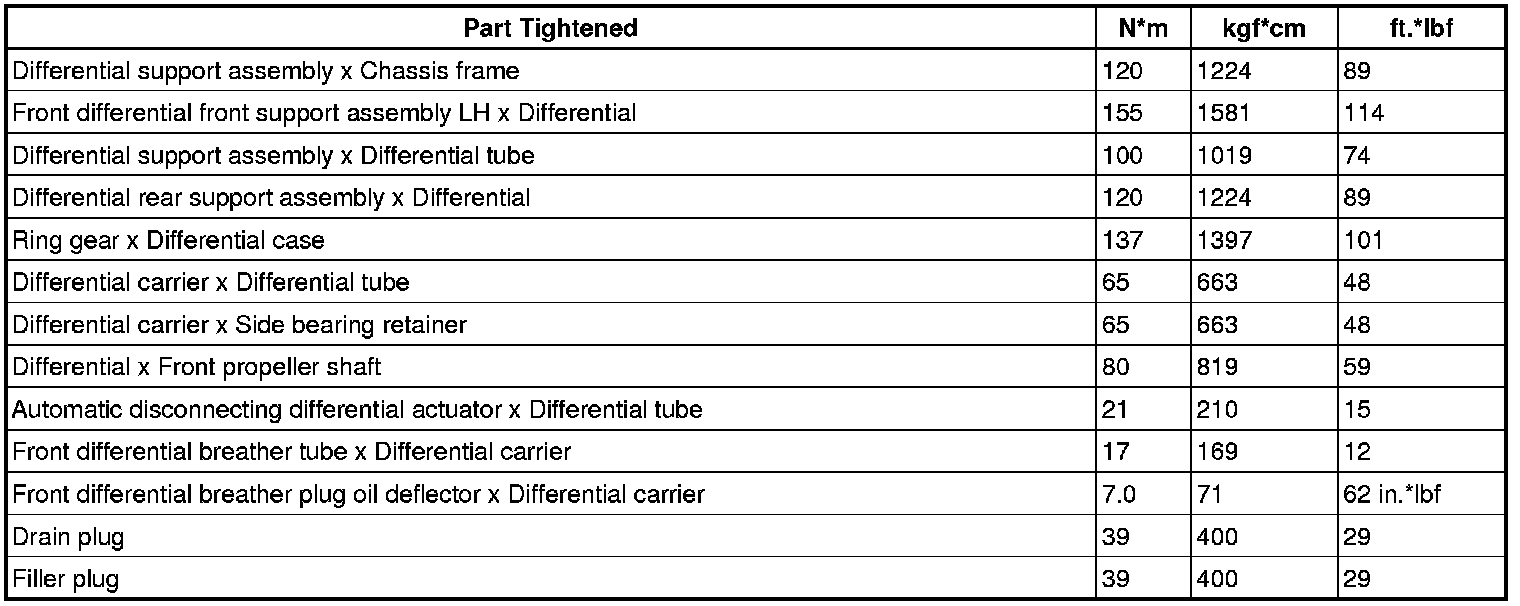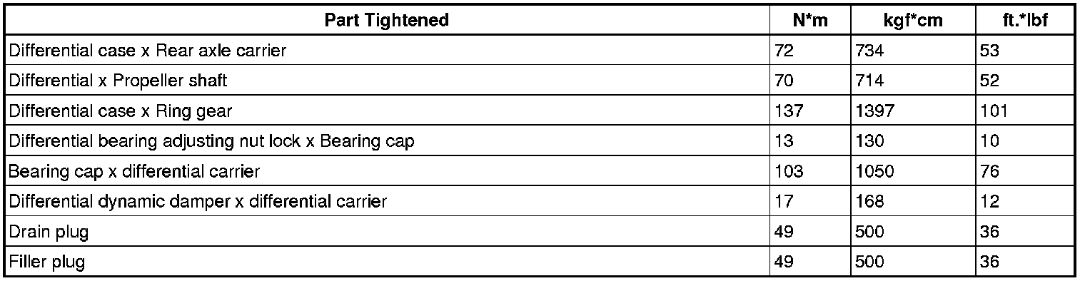 SERVICE SPECIFICATIONS: DIFFERENTIAL: TORQUE SPECIFICATIONS