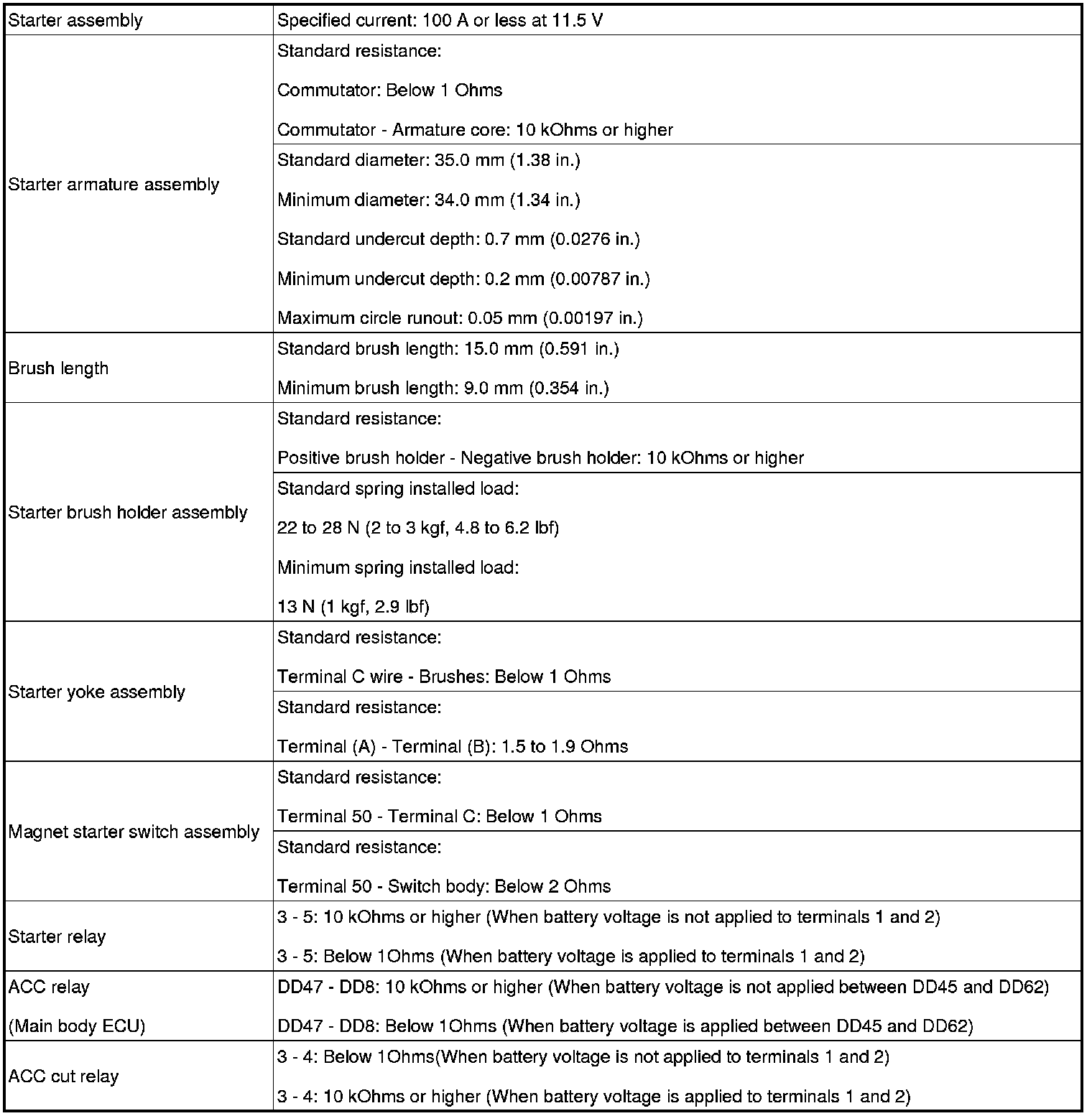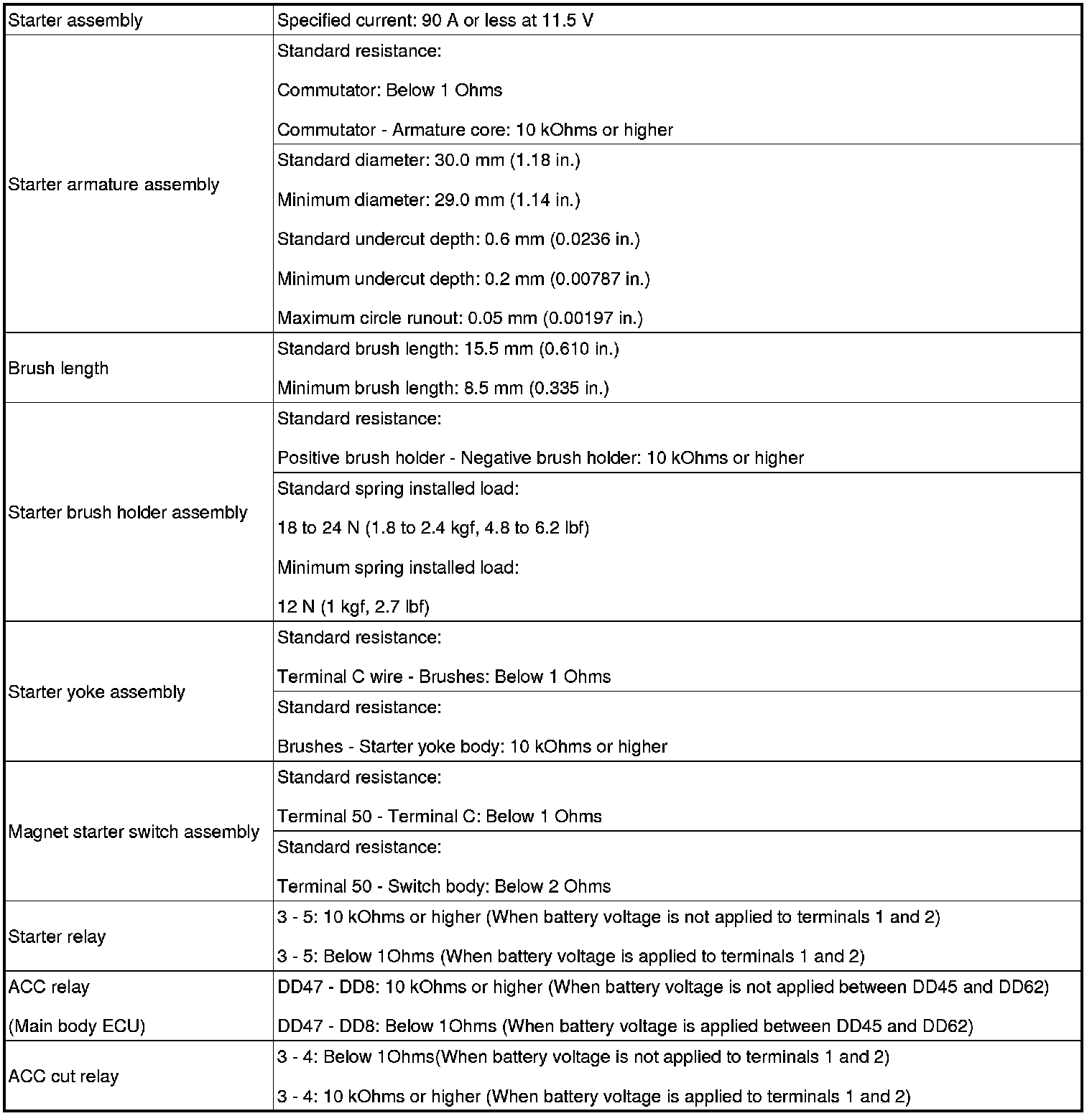 SERVICE SPECIFICATIONS: 2UZ-FE STARTING: SERVICE DATA