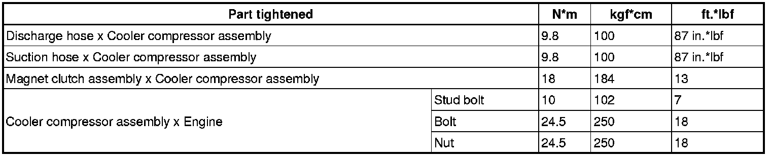 SERVICE SPECIFICATIONS: AIR CONDITIONING: TORQUE SPECIFICATIONS