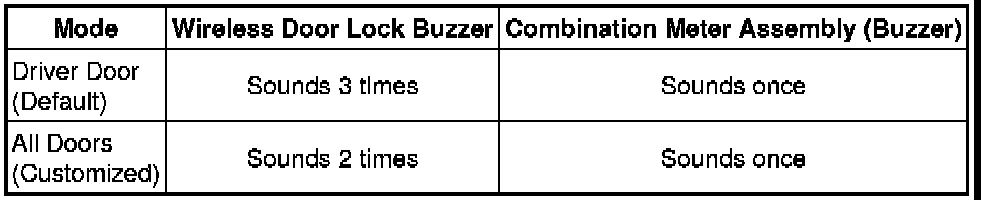 (c) The certification ECU sounds the wireless door lock buzzer and combination meter buzzer to inform the user that the mode has been switched.