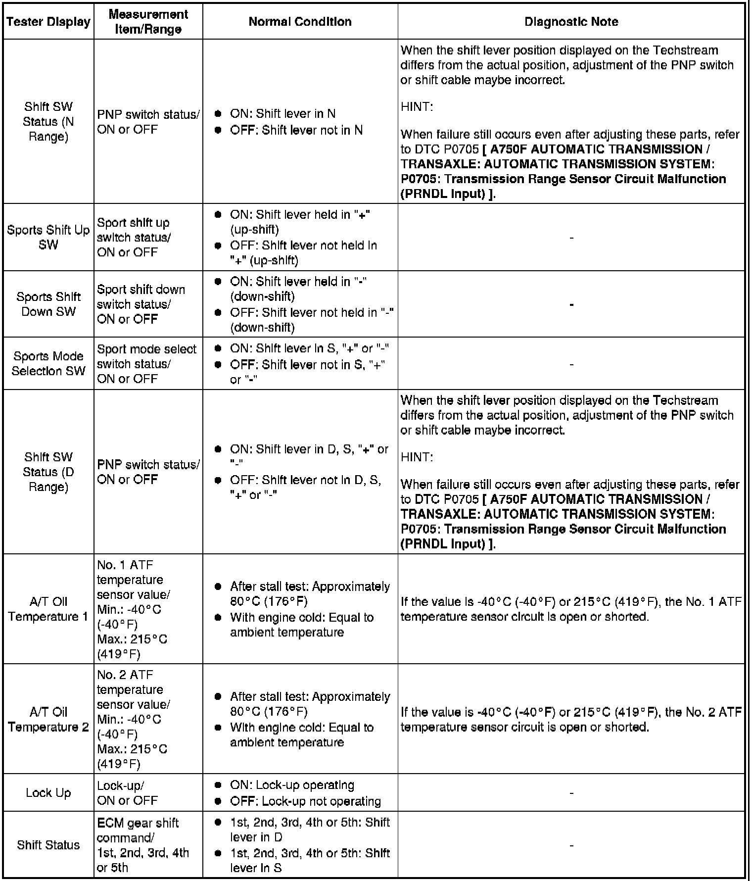 A750F AUTOMATIC TRANSMISSION / TRANSAXLE: AUTOMATIC TRANSMISSION SYSTEM: DATA LIST / ACTIVE TEST