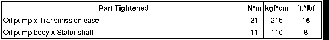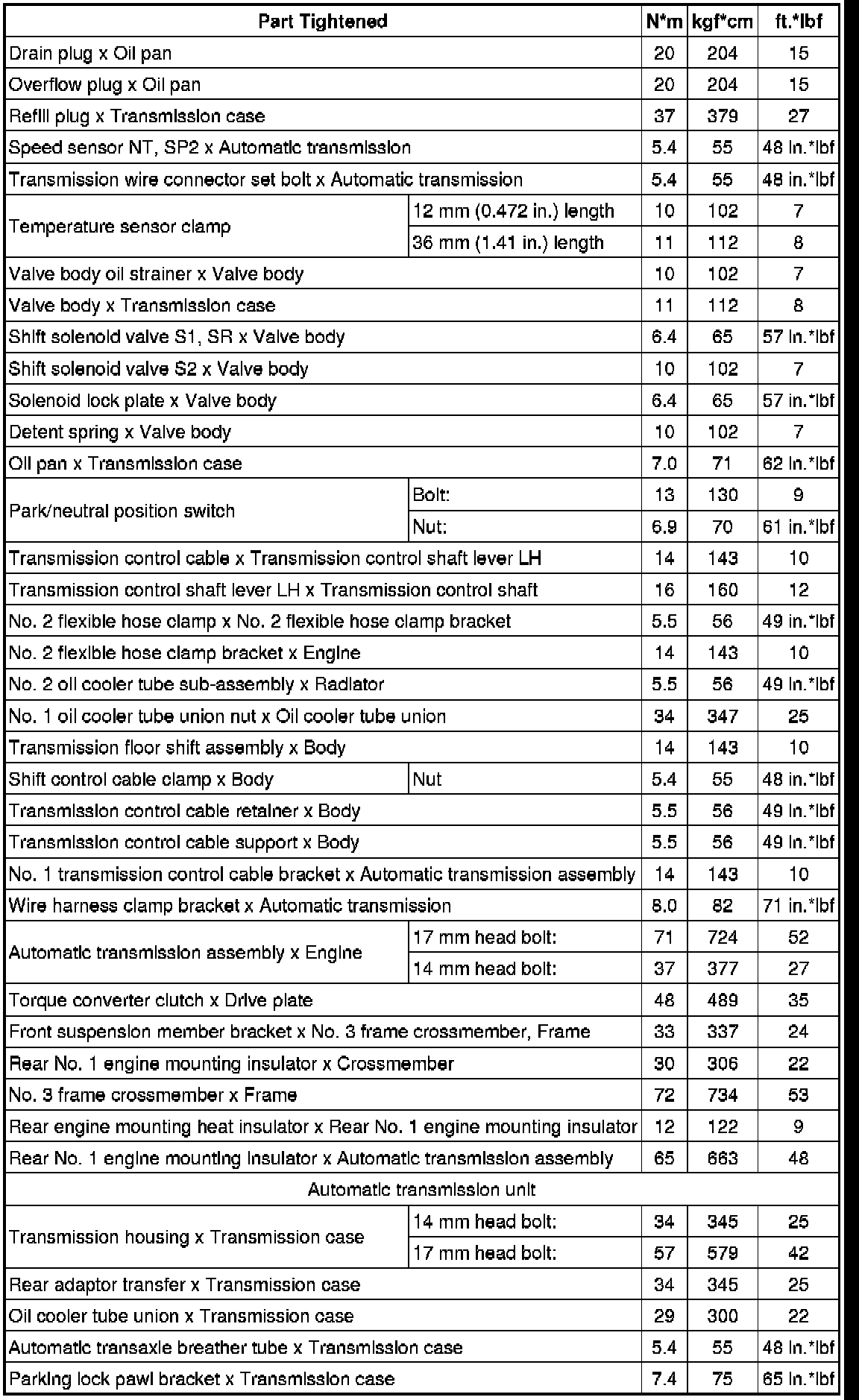 SPECIFICATIONS: A750F AUTOMATIC TRANSMISSION / TRANSAXLE: TORQUE SPECIFICATIONS