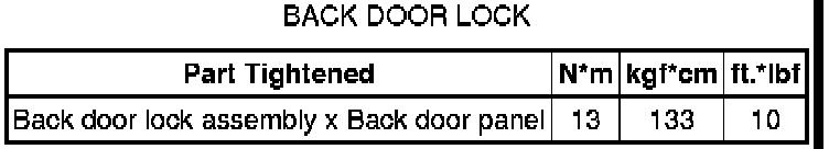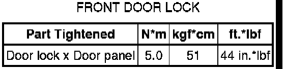 SPECIFICATIONS: DOOR LOCK: TORQUE SPECIFICATIONS