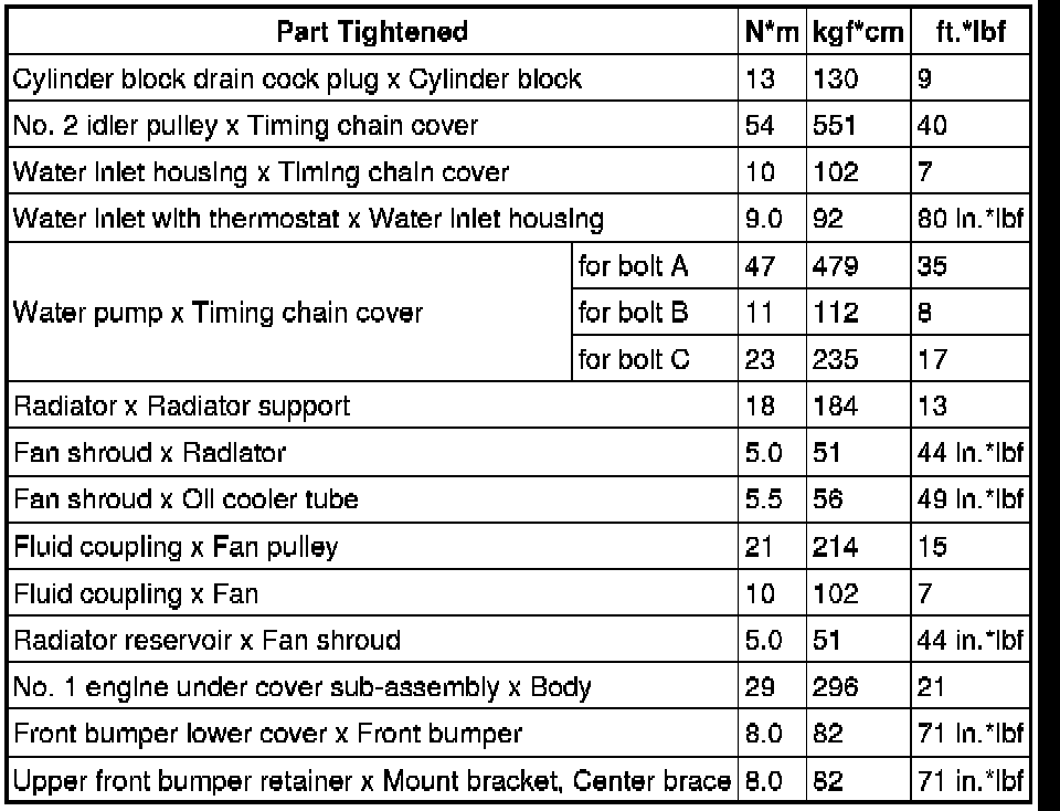 SPECIFICATIONS: 1GR-FE COOLING: TORQUE SPECIFICATIONS