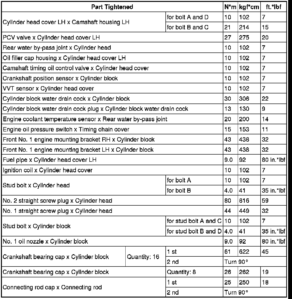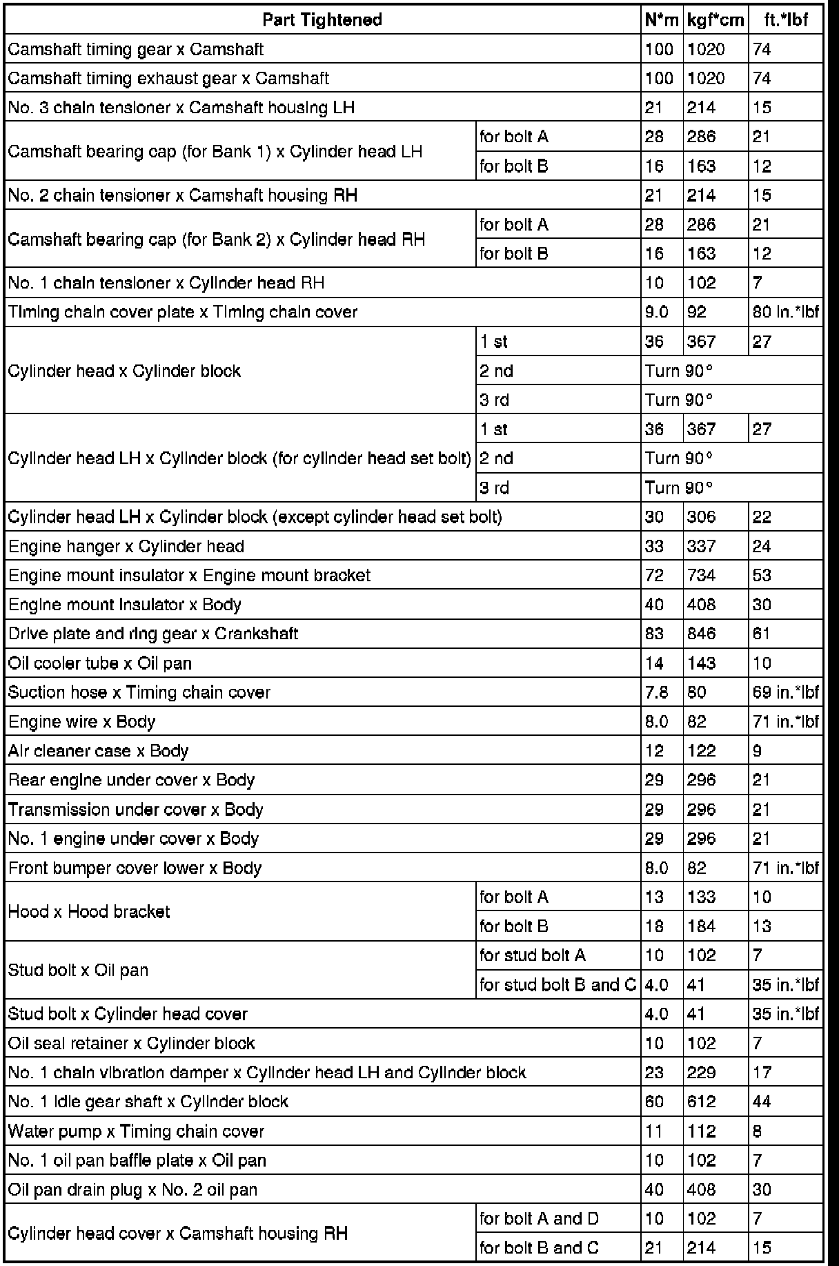 SPECIFICATIONS: 1GR-FE ENGINE MECHANICAL: TORQUE SPECIFICATIONS