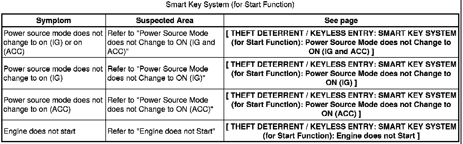 THEFT DETERRENT / KEYLESS ENTRY: SMART KEY SYSTEM (for Start Function): PROBLEM SYMPTOMS TABLE