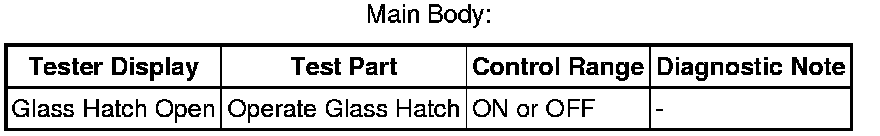 WINDSHIELD / WINDOWGLASS: GLASS HATCH OPENER SYSTEM: DATA LIST / ACTIVE TEST
