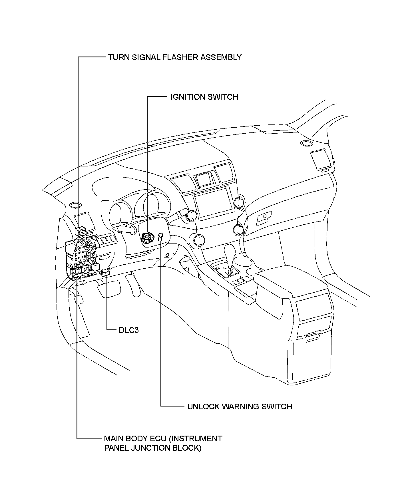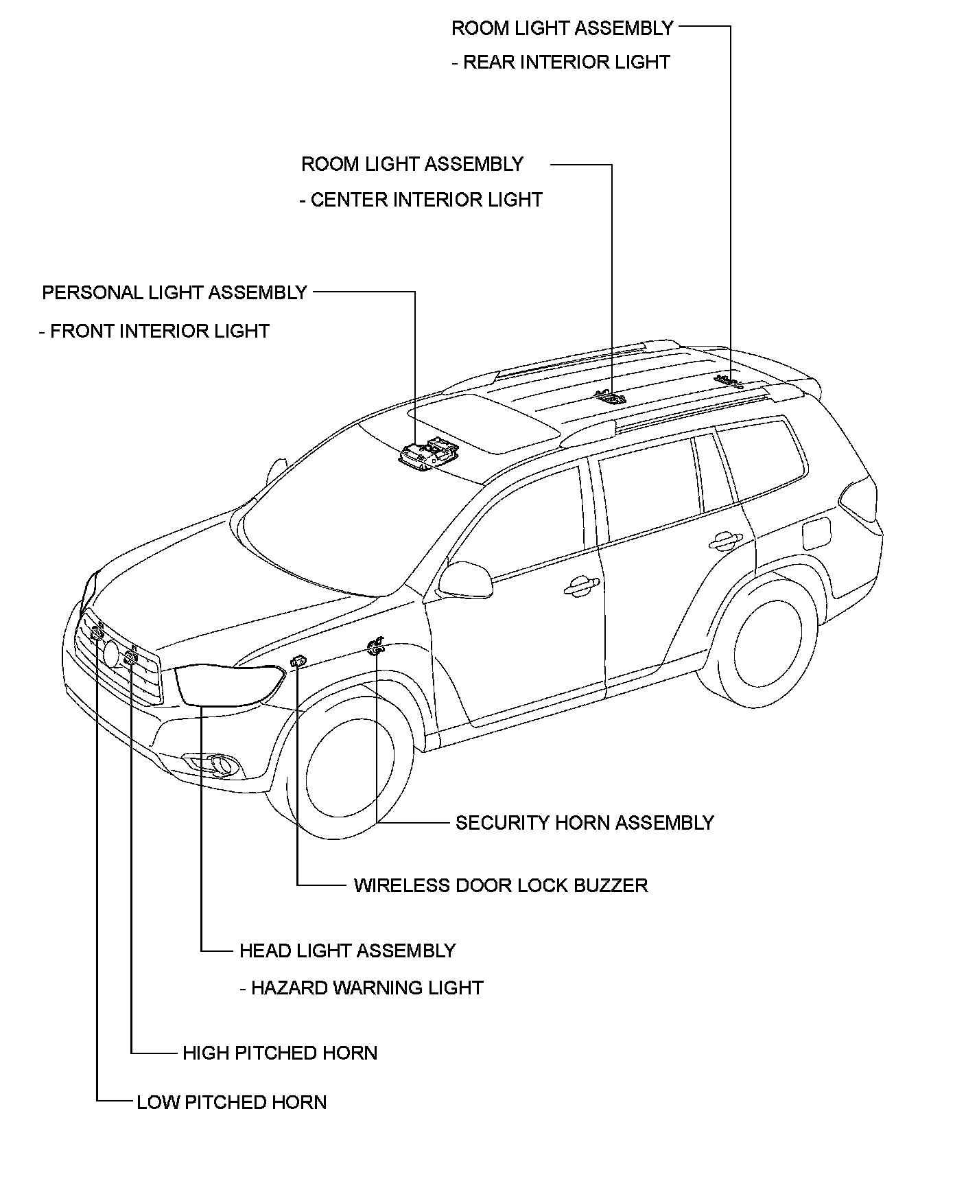 DOOR LOCK: WIRELESS DOOR LOCK CONTROL SYSTEM (w/o Smart Key System): PARTS LOCATION