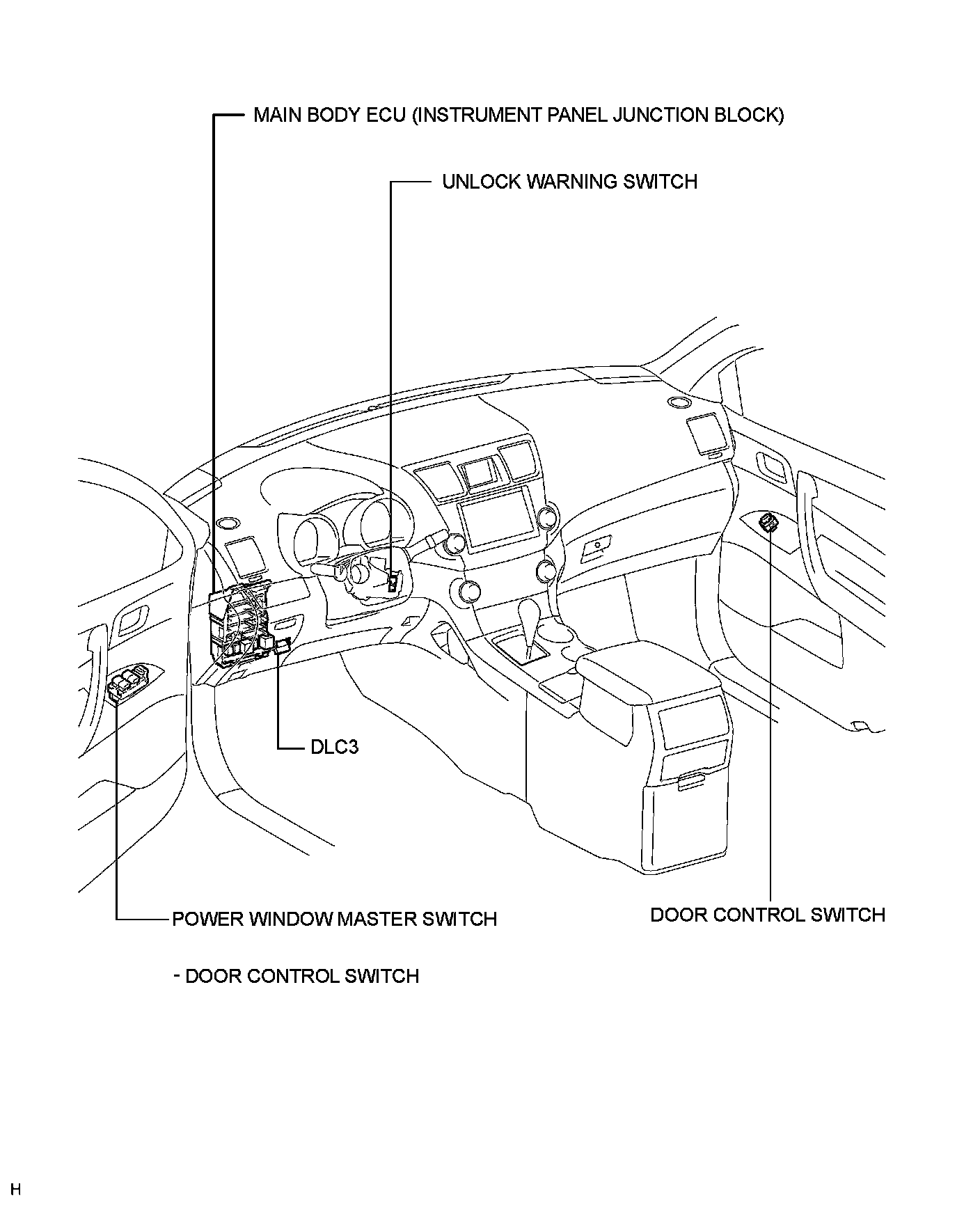 DOOR LOCK: POWER DOOR LOCK CONTROL SYSTEM: PARTS LOCATION