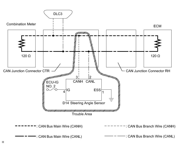 1. CHECK CAN BUS LINE FOR DISCONNECTION (STEERING ANGLE SENSOR BRANCH WIRE)