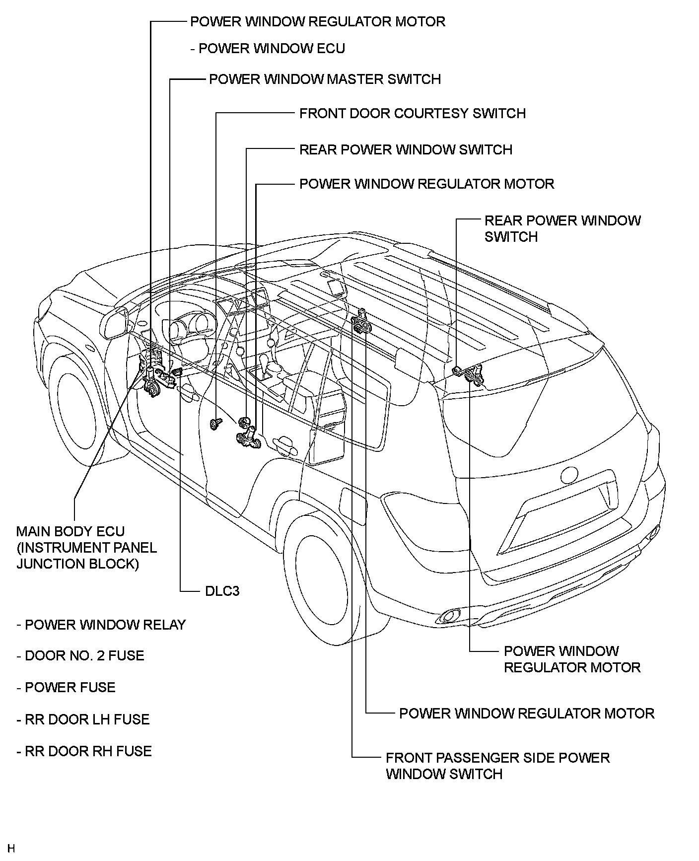 WINDSHIELD / WINDOWGLASS: POWER WINDOW CONTROL SYSTEM: PARTS LOCATION